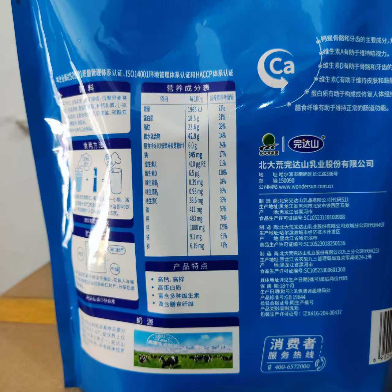 完达山益生元高钙中老年奶粉