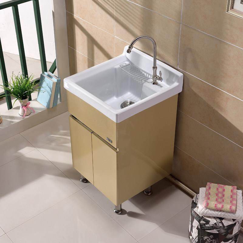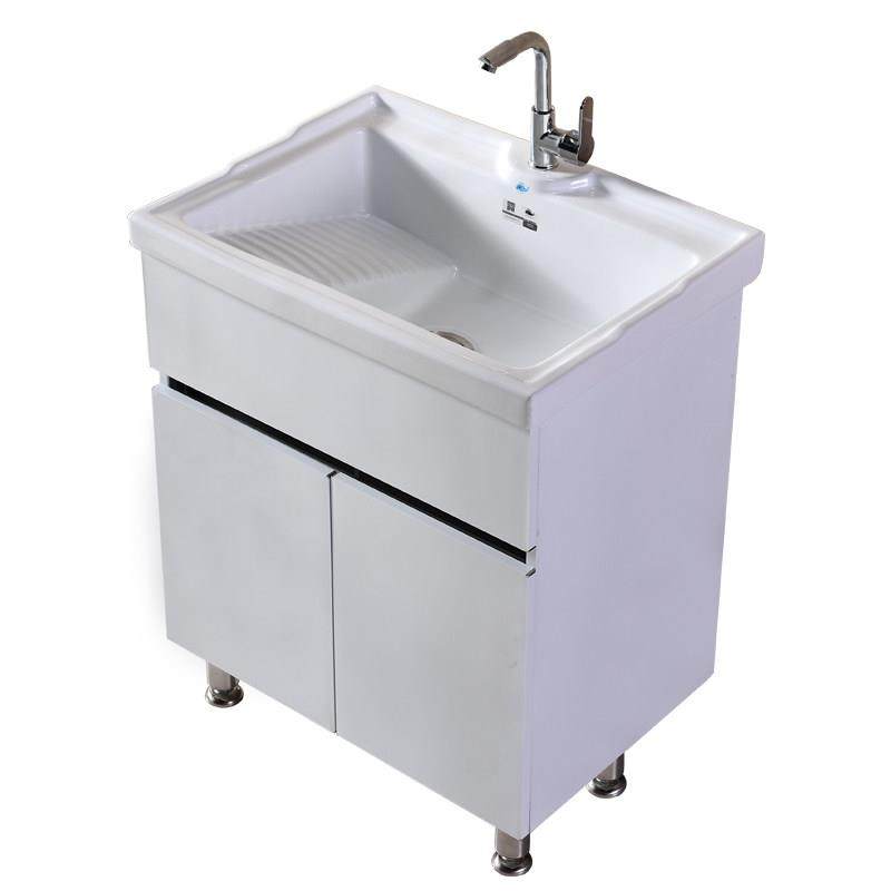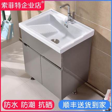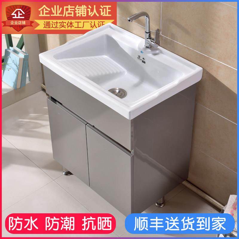 不锈钢阳台洗衣柜单柜洗手台陶瓷定制带搓板家用落地式水槽