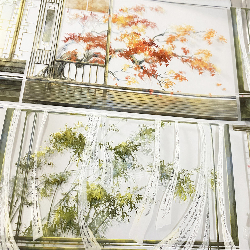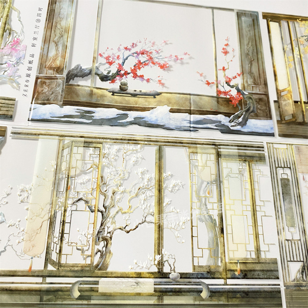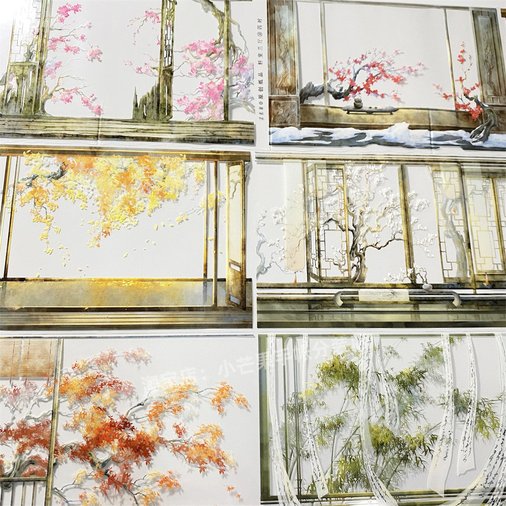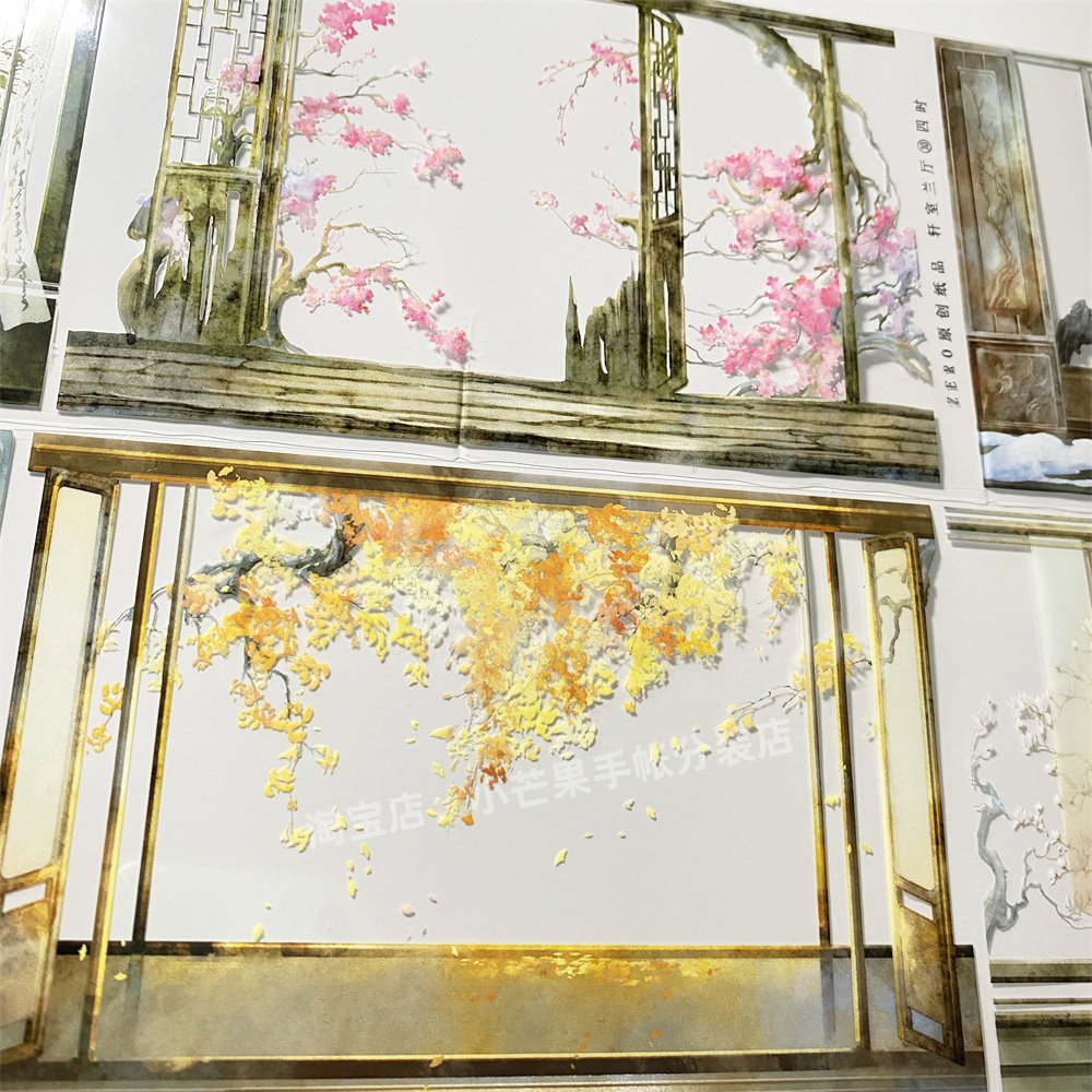 手帐分装胶带轩室兰厅10四时zero窗格屏风背景古风素材账流麻贴纸