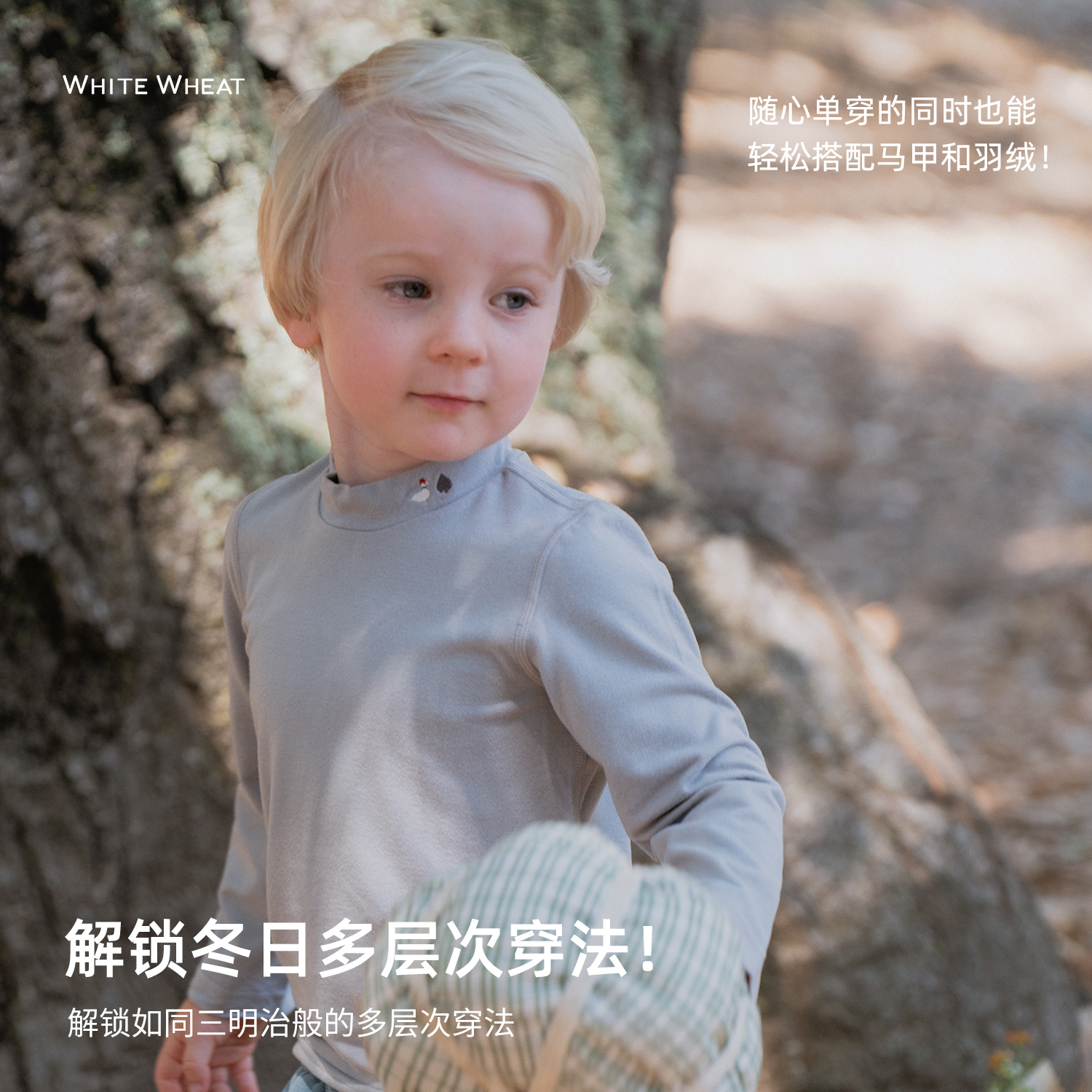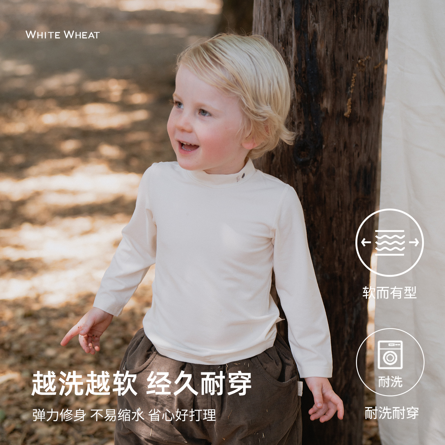 whitewheat男童2025秋冬新款上衣女孩立领长袖宝宝纯色洋气打底衫