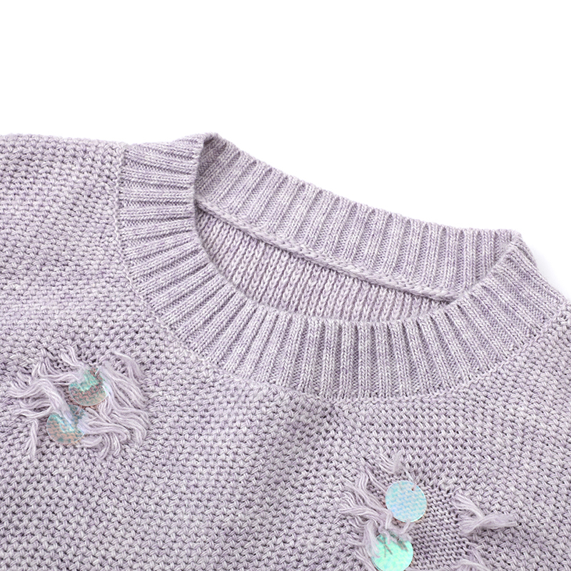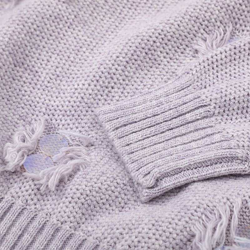 影系の2025秋季新款时尚百搭甜美慵懒风紫色亮片针织开衫女小上衣