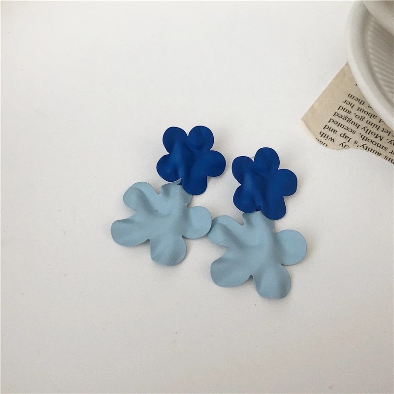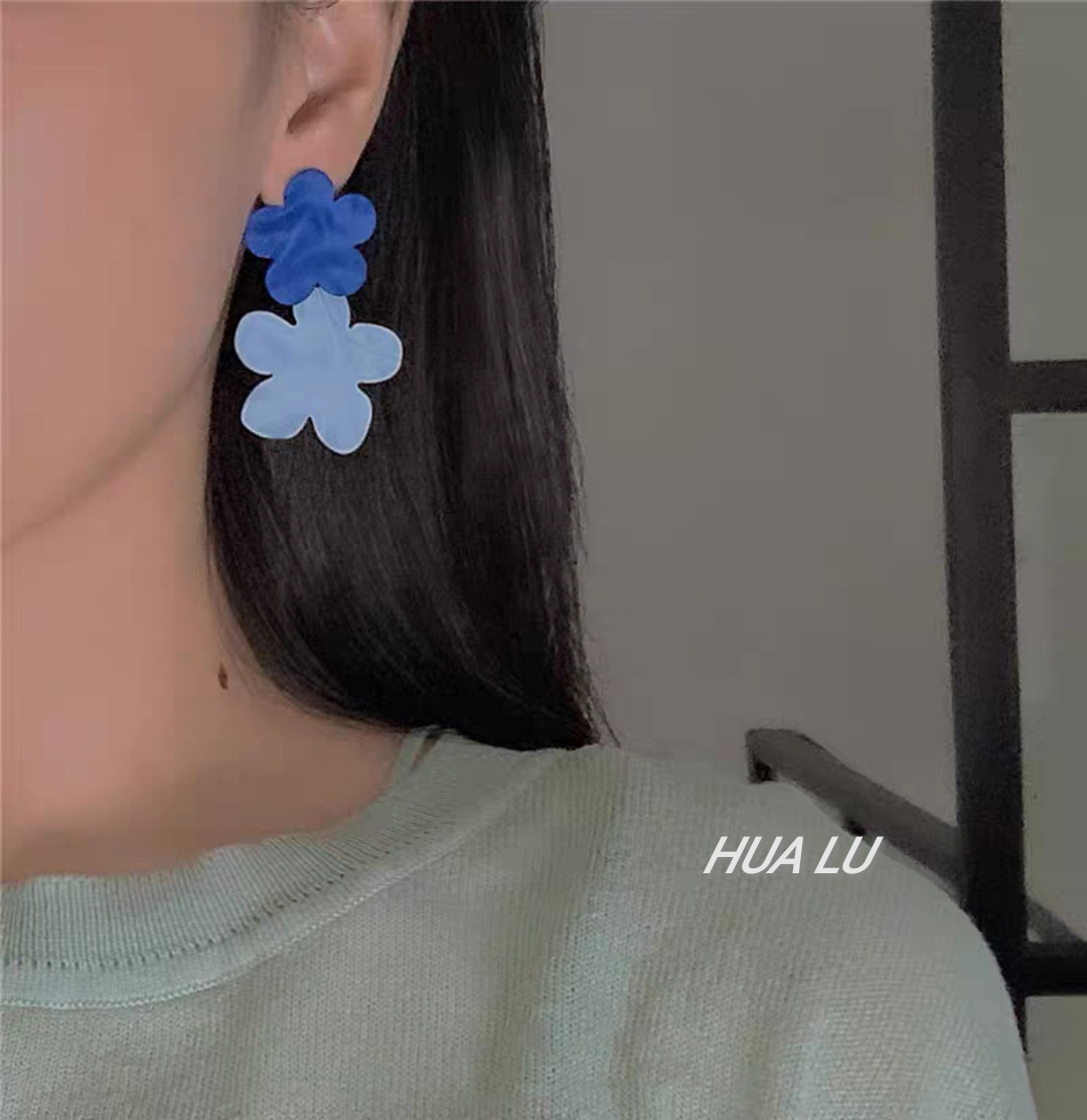 HUALU/ 蓝蓝天空 小花花可爱少女耳钉撞色蓝色花朵耳环耳夹 新品