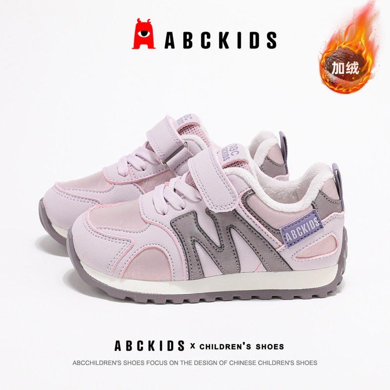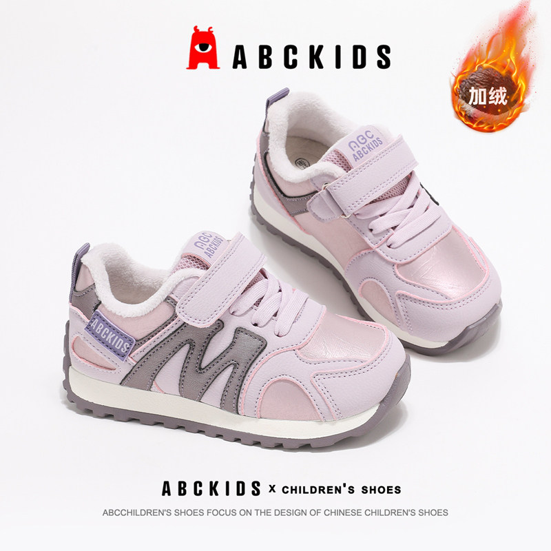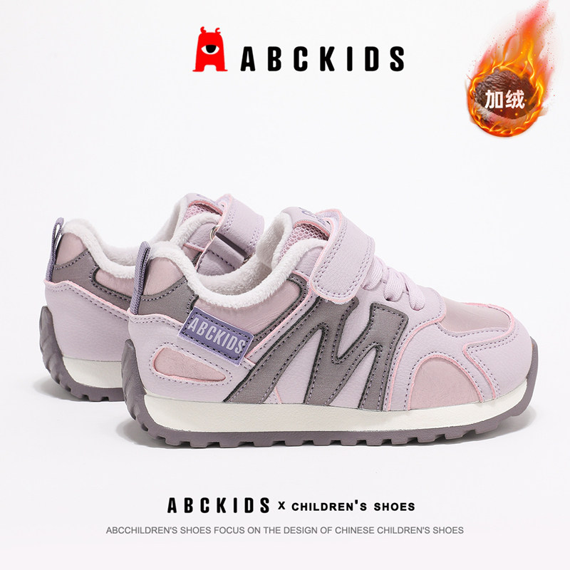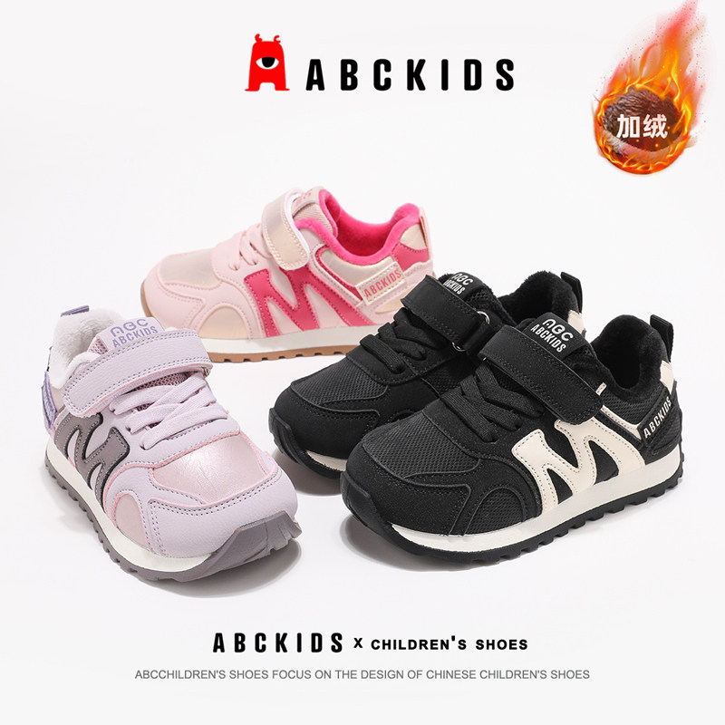 ABCkids童鞋女童运动鞋加绒冬季防滑跑步阿甘鞋秋冬儿童鞋子棉鞋