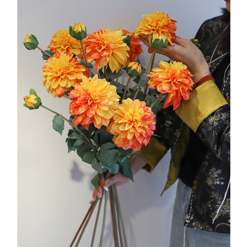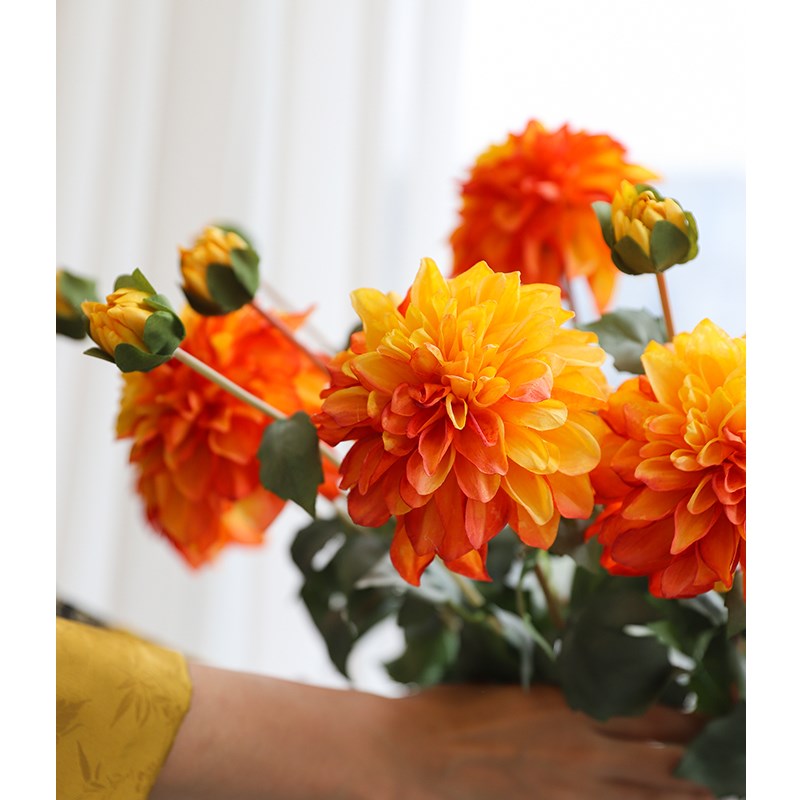 芙菡仿真花大丽花假花复古油画风客厅玄关电视柜插花摆件绢花婚庆