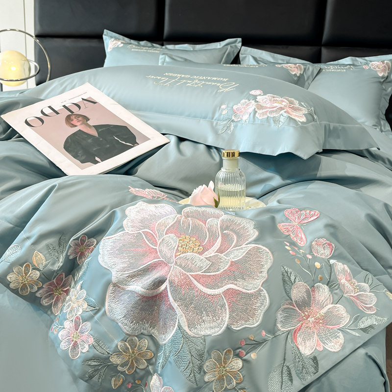轻奢风A类120支长绒棉四件套高级感全棉纯棉刺绣被套床单床上用品