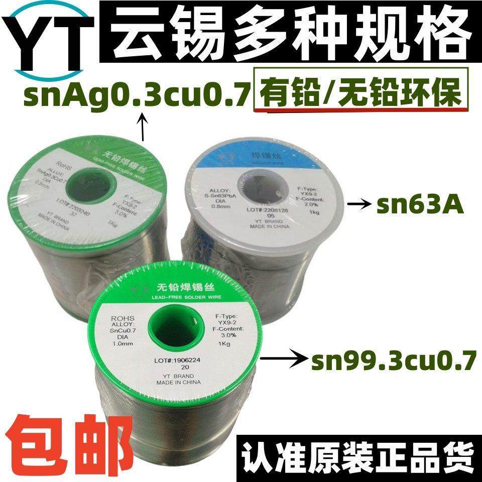 云锡无铅焊锡丝 锡线SN99.3CU0.7云南锡业环保无铅焊丝焊锡条 1Kg