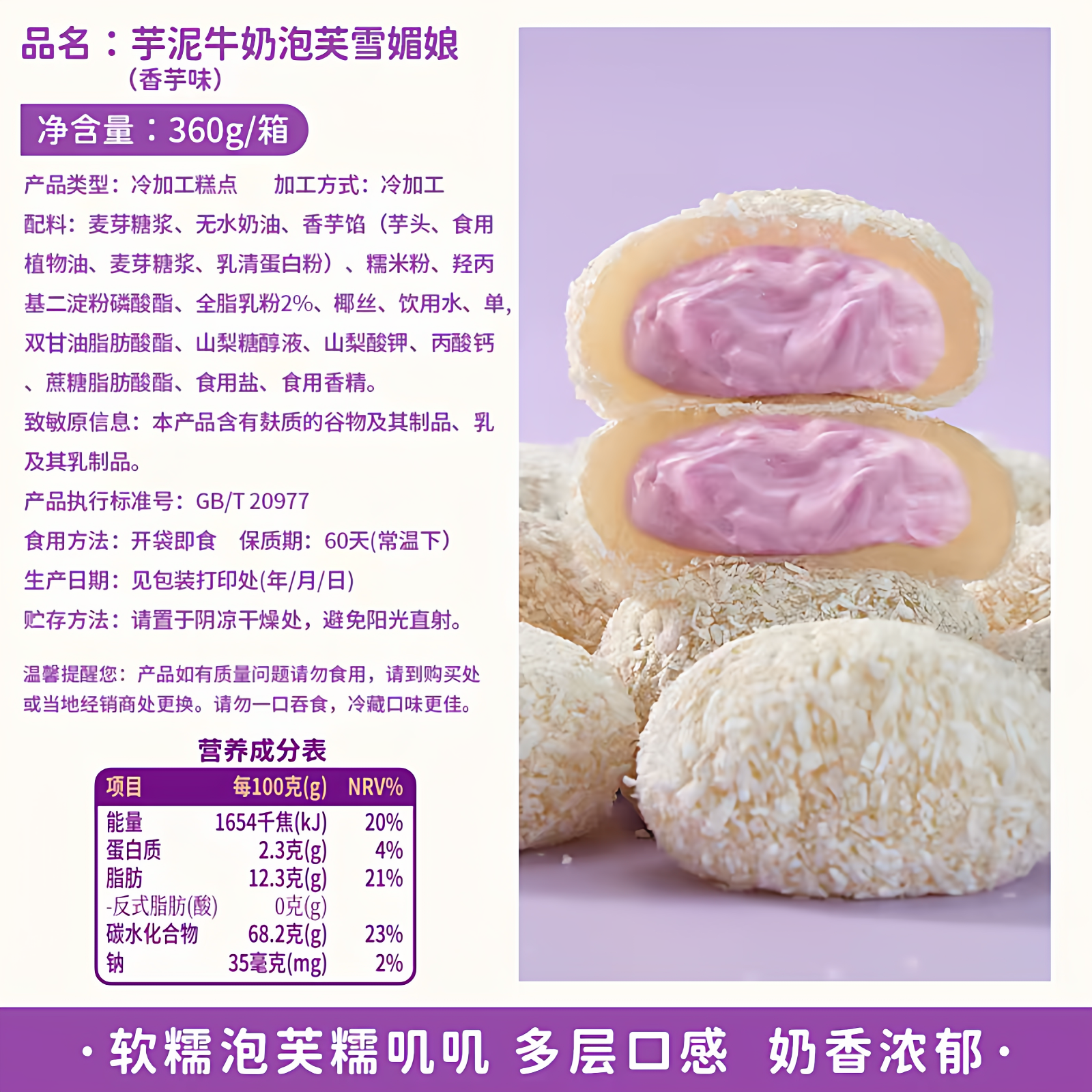 芋泥牛奶泡芙雪媚娘爆浆麻薯面包早餐整箱糯米糕零食休闲食品小吃