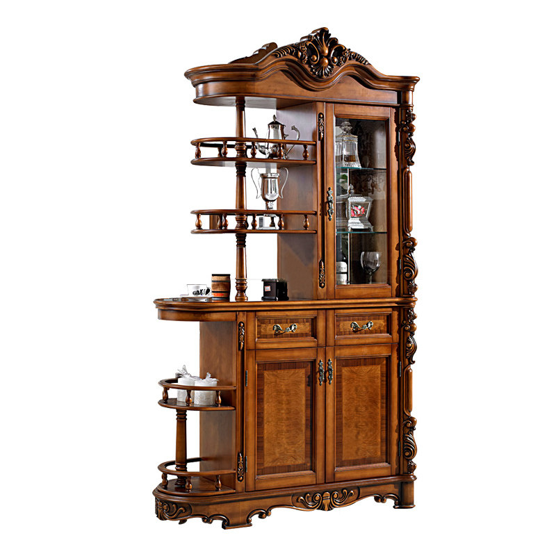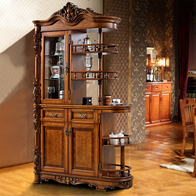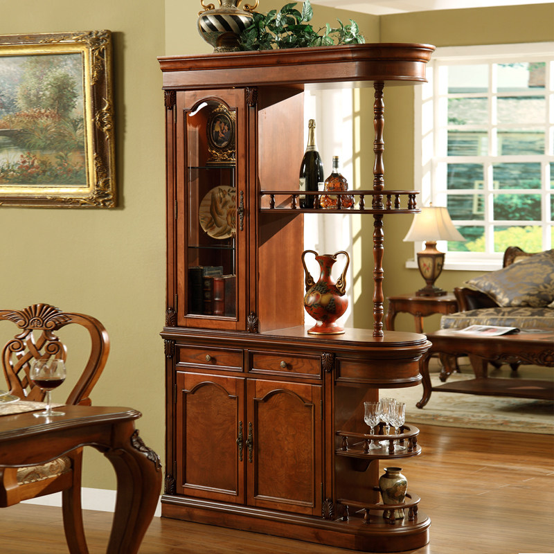 美式乡村实木间厅柜隔断屏风家用轻奢复古玄关玻璃双面现代简约柜