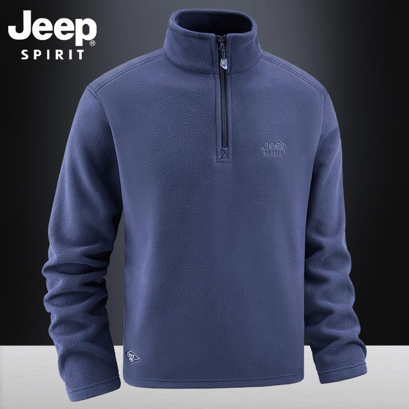 JEEP吉普摇粒绒卫衣秋冬男士宽松休闲半拉链打底衫立领抓绒衣外套