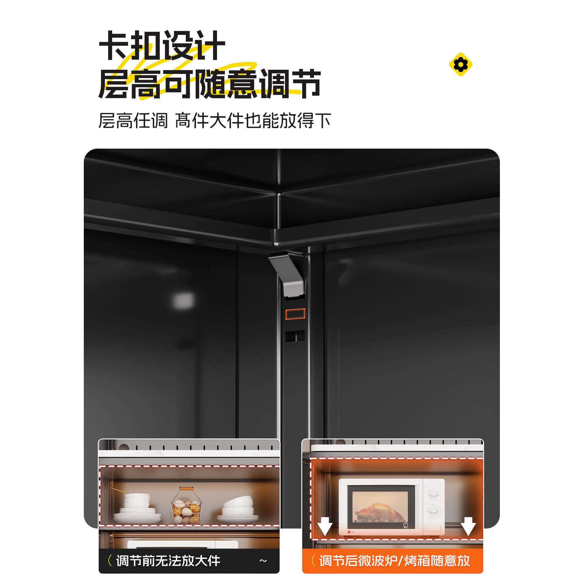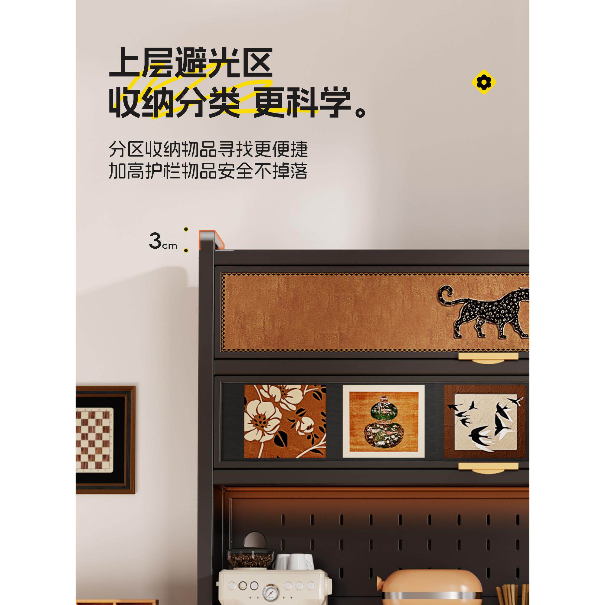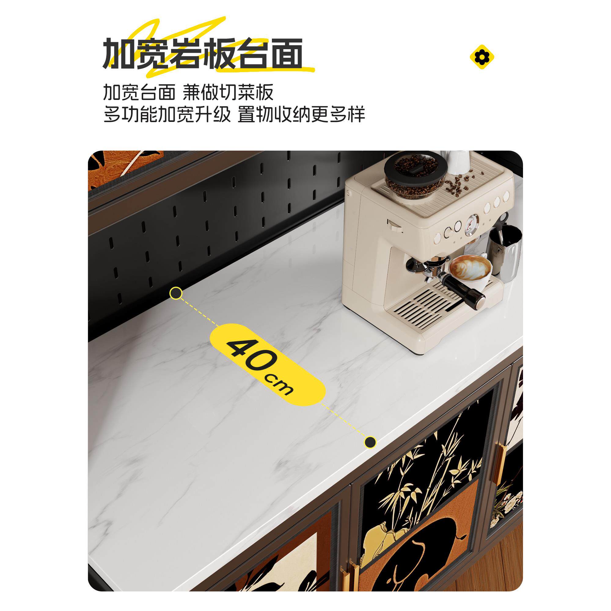 中古风厨房置物架钢制餐边柜家用落地多层靠墙一体岩板储物收纳柜