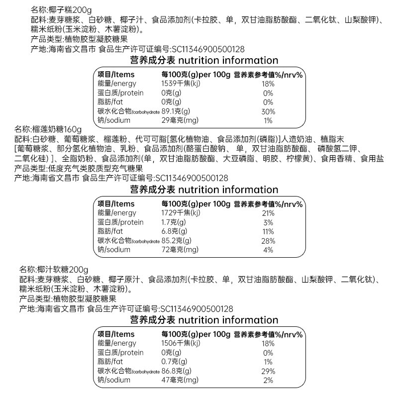 春光食品海南特产糖果装29年国货椰子糕软糖椰子芒果榴莲奶糖