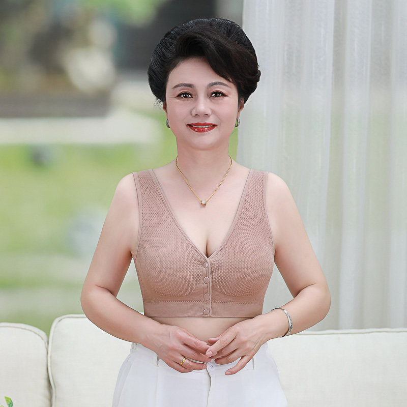 前扣式妈妈内衣女中老年文胸棉质聚拢无钢圈透气背心胸罩睡眠抹胸