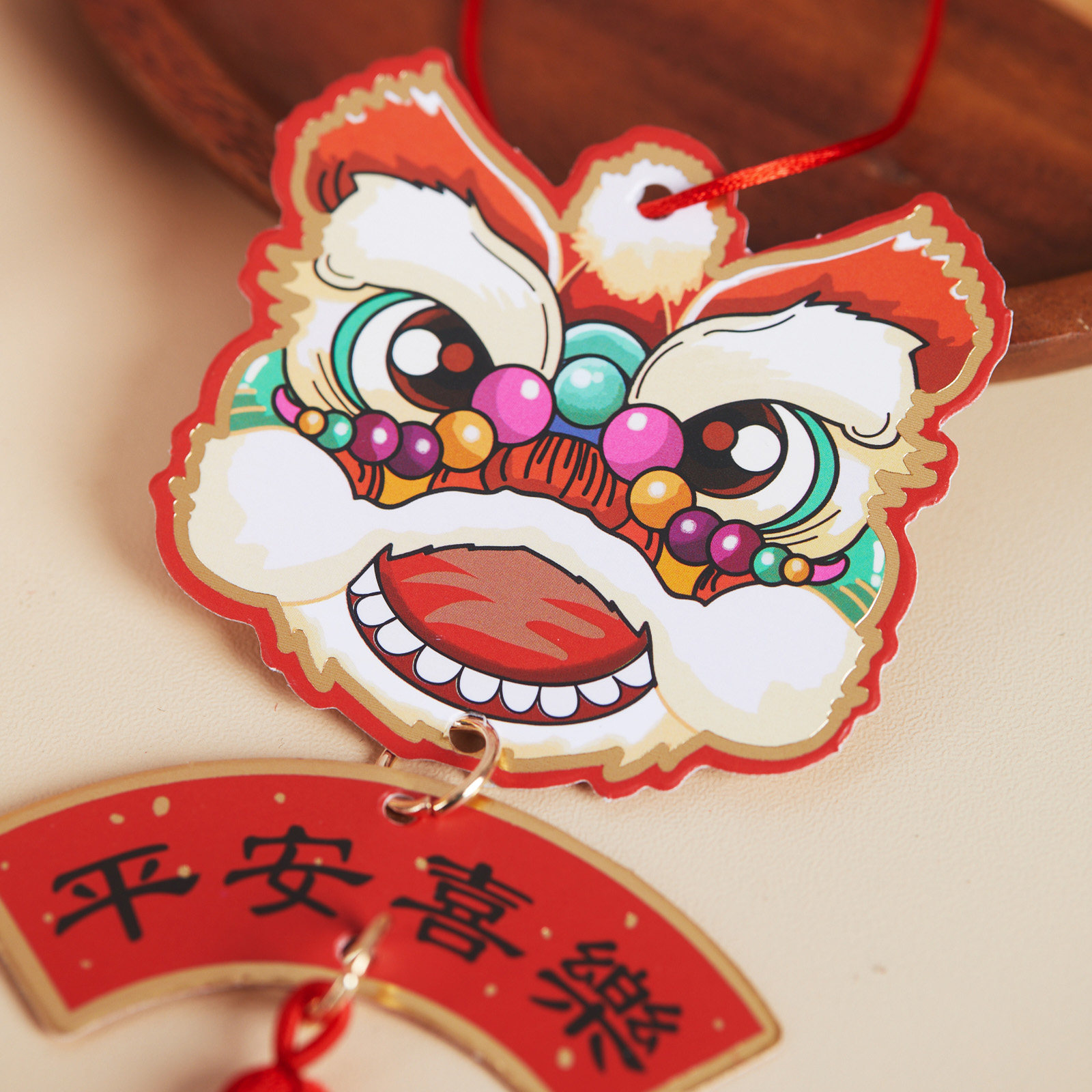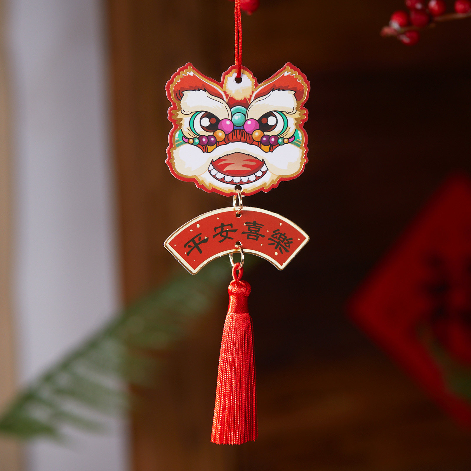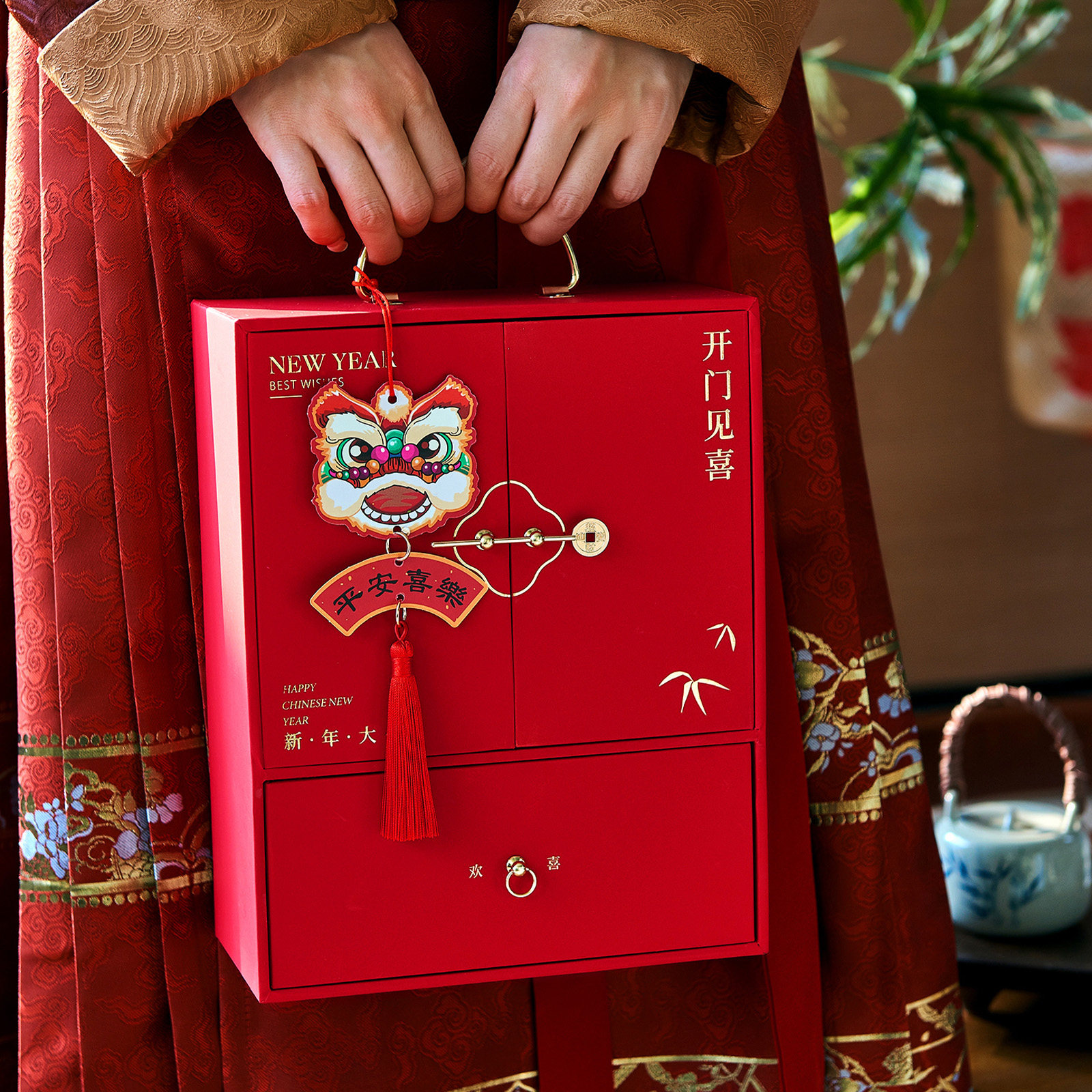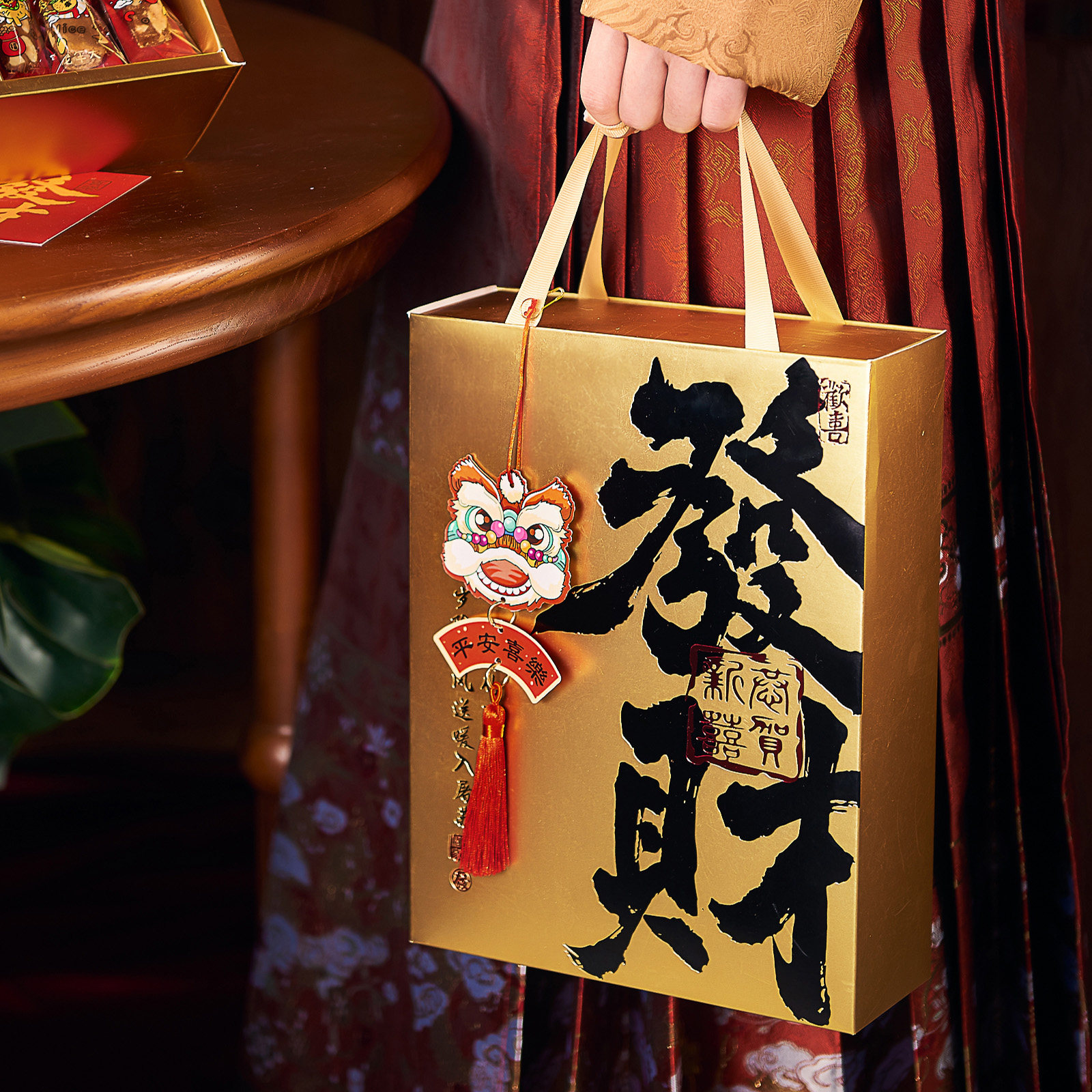 新年春节过年中式红色流苏高级烘焙礼盒包装盒祝福语装饰小挂件