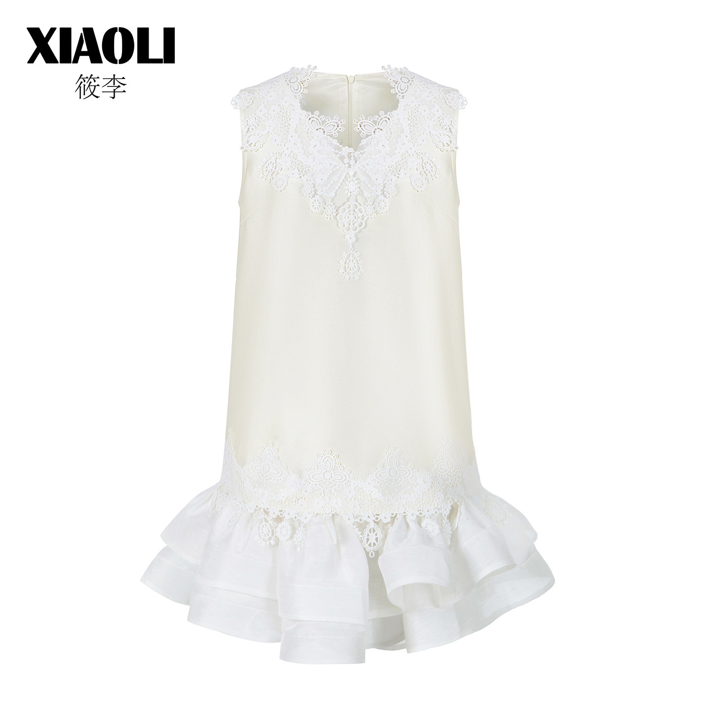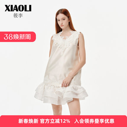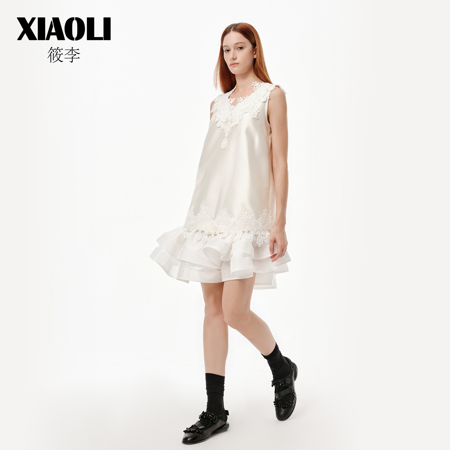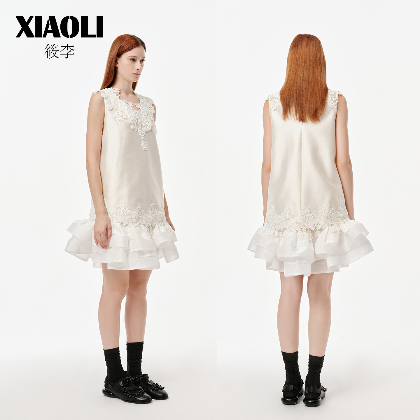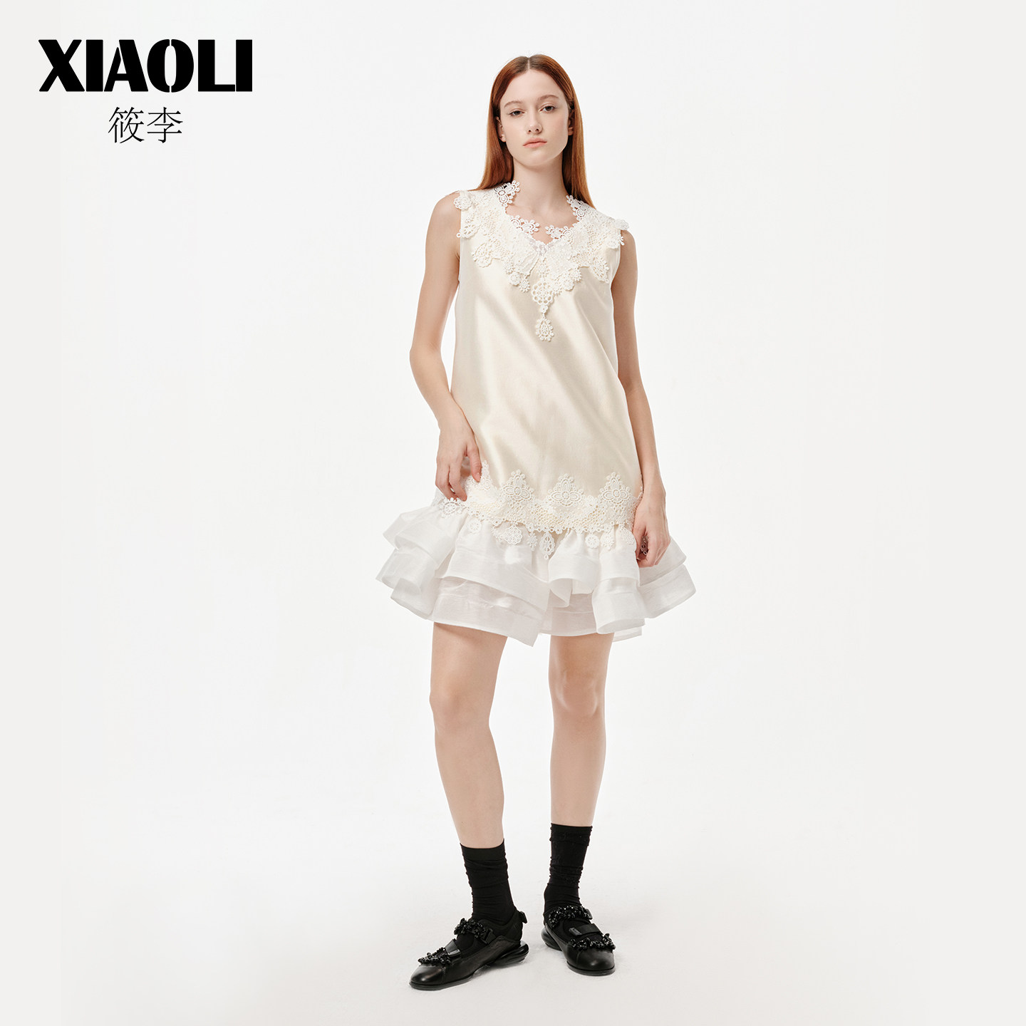 XIAOLI筱李26年春季新品蕾丝V领荷叶边下摆丝毛背心裙连衣裙