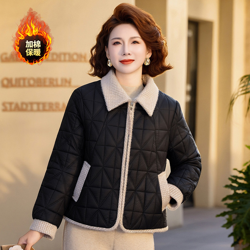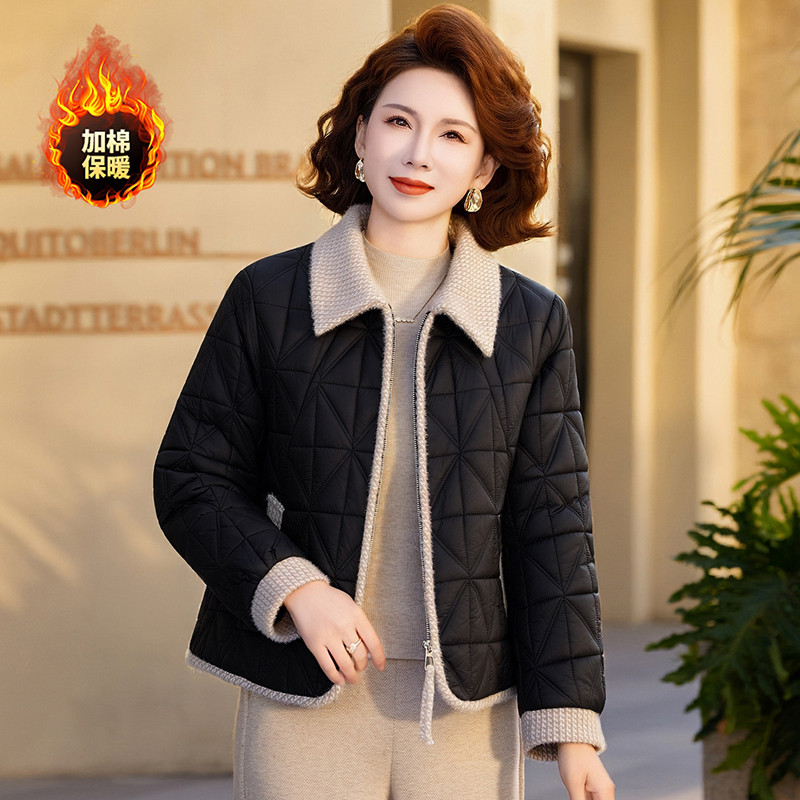 妈妈装冬季加绒加厚棉衣纯色保暖