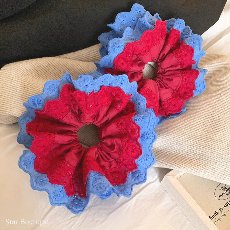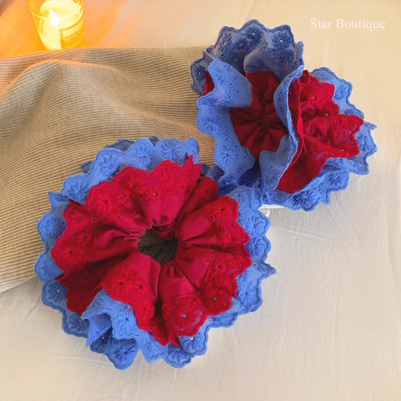 新年红色蕾丝双层大肠发圈女韩系高级感丸子头扎头发头绳超大头饰