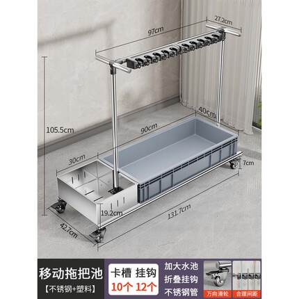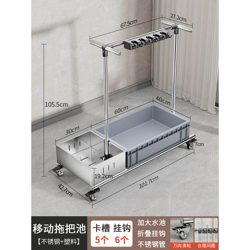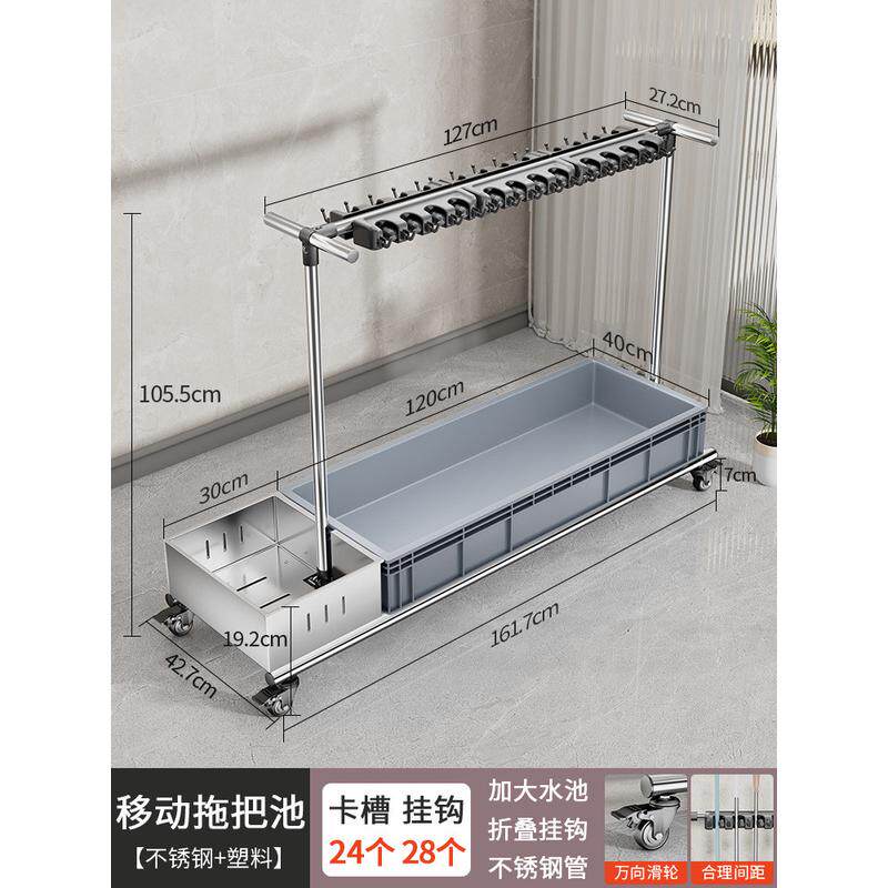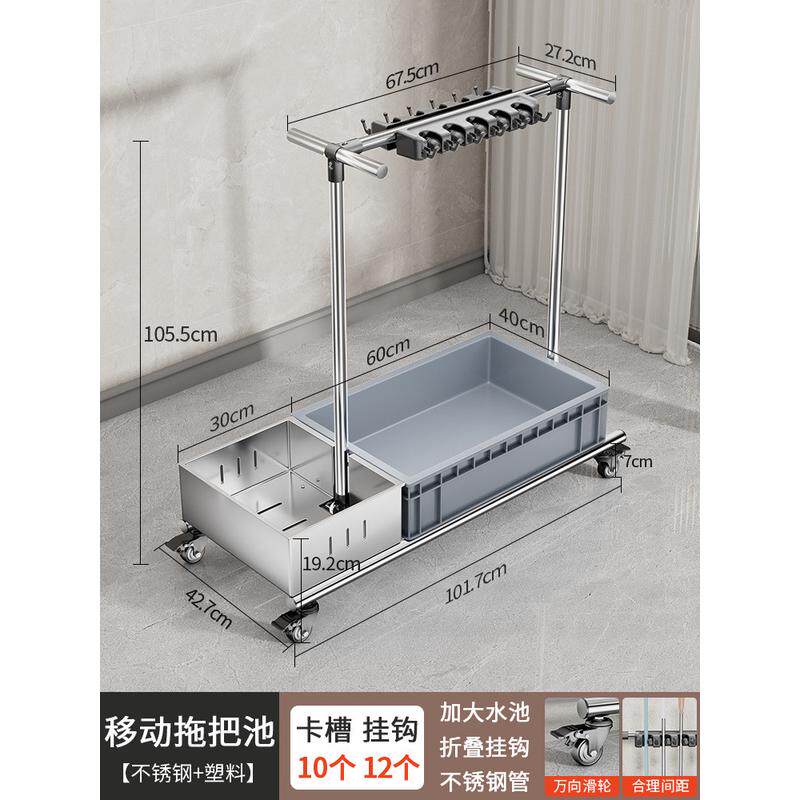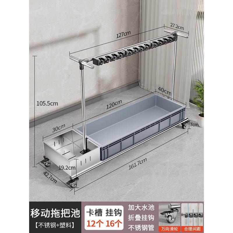 移动清洁卫生拖把架不锈钢放拖布置物架商用存放落地工具收纳架子