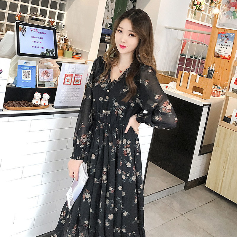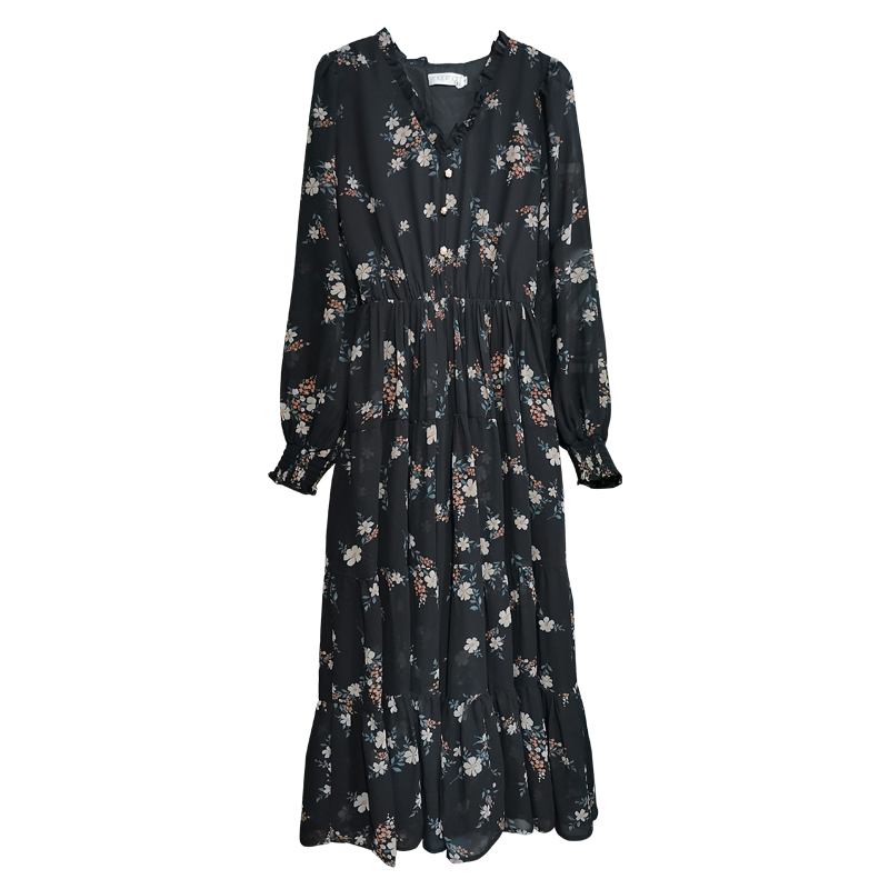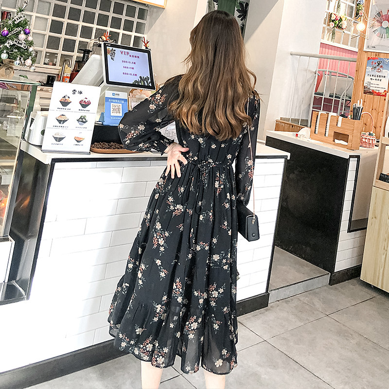 秋装2025年新款女装雪纺碎花连衣裙女夏春秋设计感小众收腰高级感