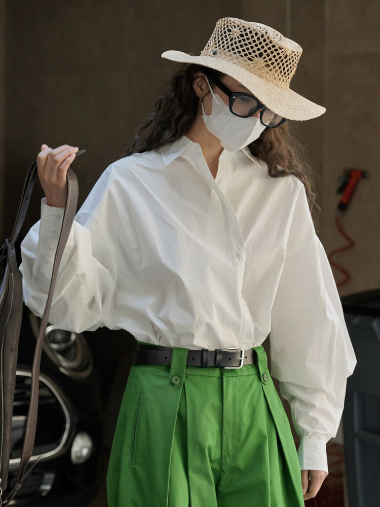设计感斜门襟廓形白色衬衫秋季新款韩版宽松显瘦纽扣休闲上衣女