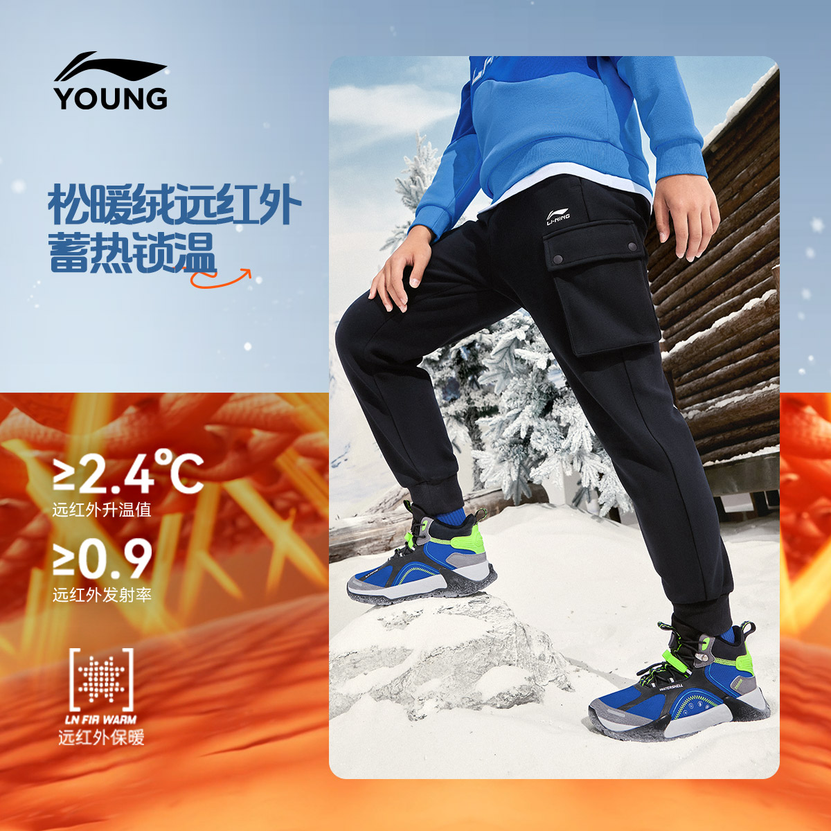 李宁加绒工装裤男童装儿童新款冬季冬装棉裤加厚保暖运动卫裤裤子