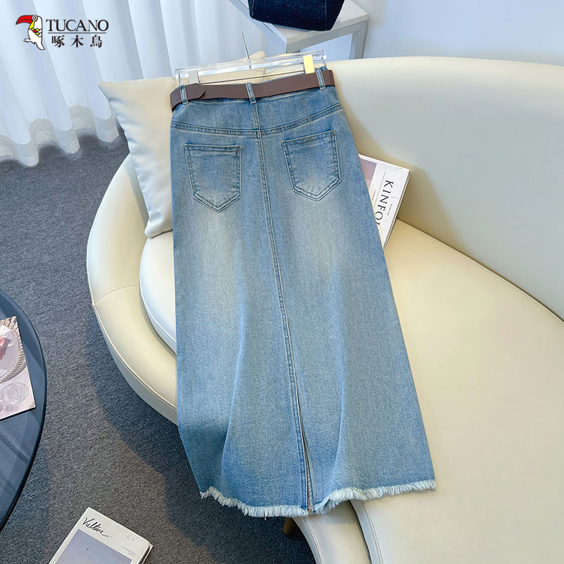 啄木鸟秋季牛仔半身裙女高腰显瘦a字直筒裙薄款中长款包臀裙子