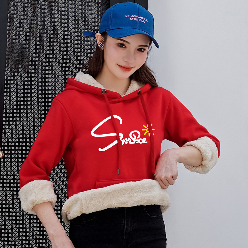 纯棉双12卫衣女羊羔绒新款秋冬装加绒加厚连帽宽松韩版保暖外套头