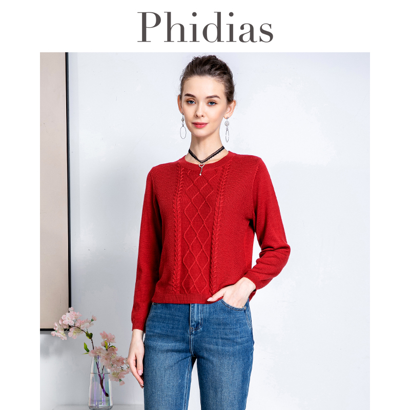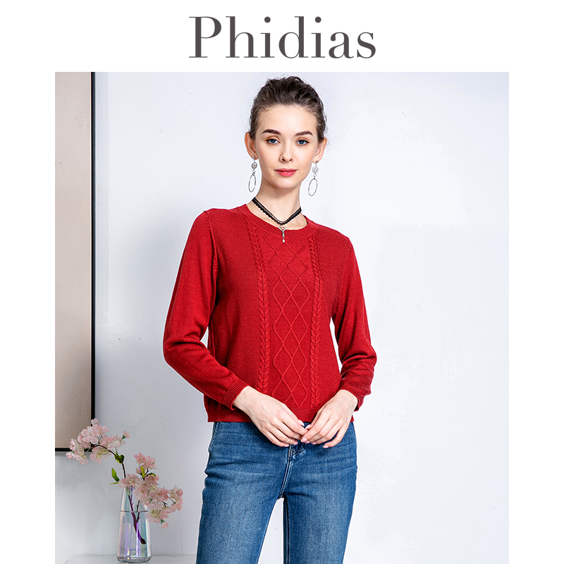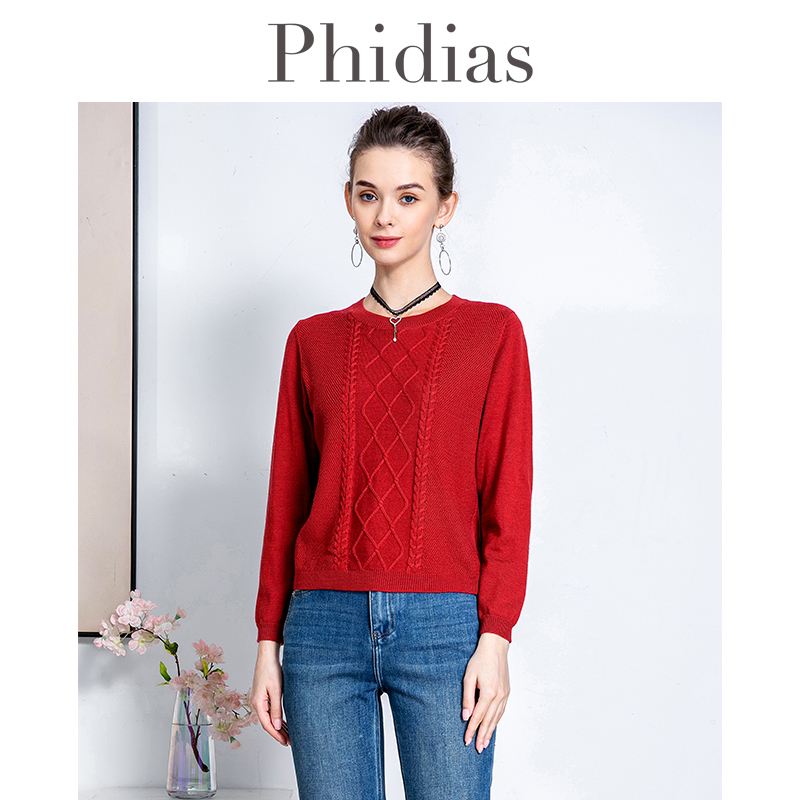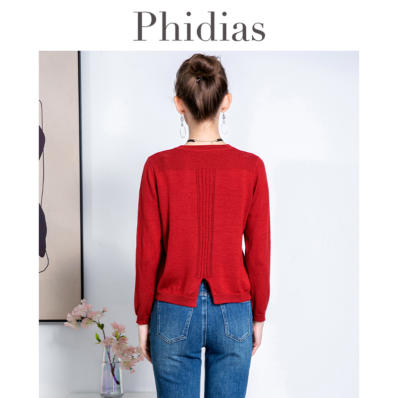 Phidias长袖毛衫针织衫女2024年春新款时尚百搭修身显瘦纯色毛衣