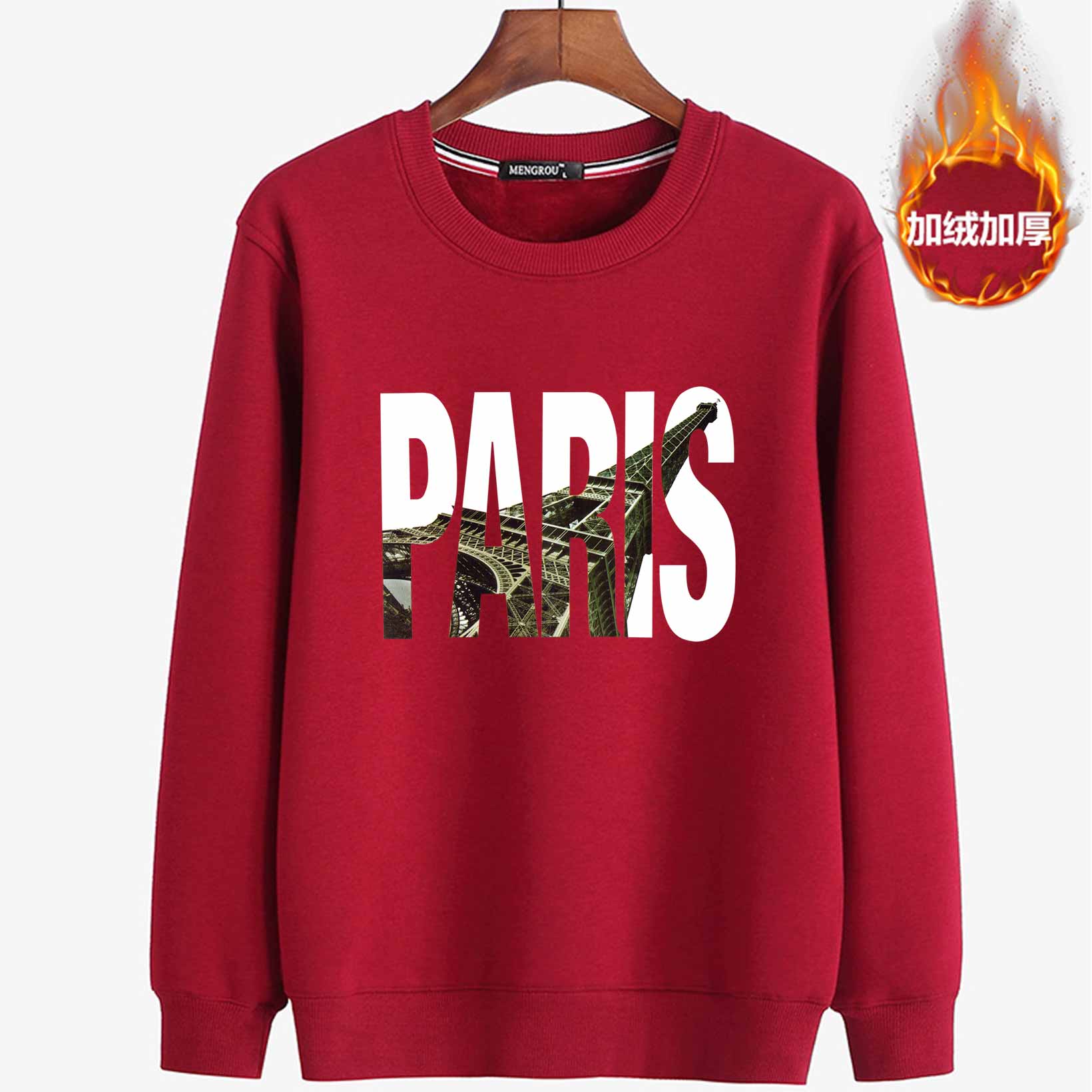 秋冬新款男士加绒加厚长袖T恤圆领纯棉保暖套头卫衣打底衫外穿T恤