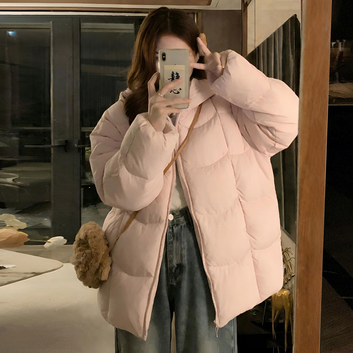 特大码胖mm粉色棉服今年流行的冬装外套女学院风甜美加厚保暖棉衣