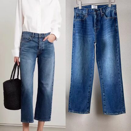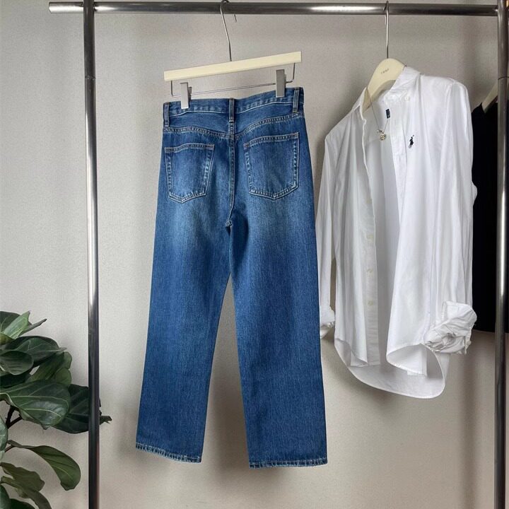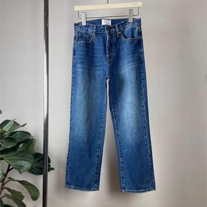 ROW显瘦神裤经典百搭9分蓝色直筒牛仔裤露脚踝小个子显高显腿直