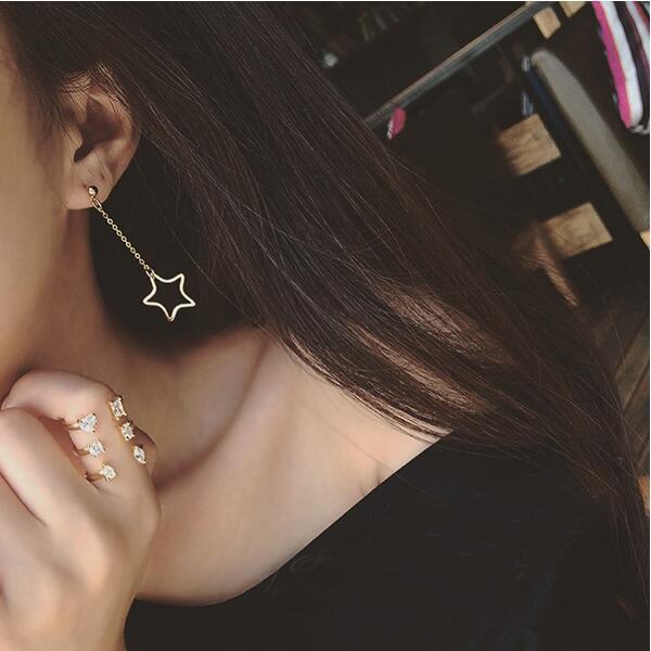 E482韩国百搭潮流三角形圆形星星几何耳环韩版不对称耳饰春季新款