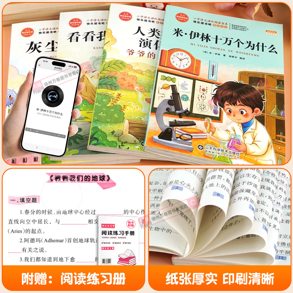 全4册十万个为什么四年级下册阅读课外书必读正版目四下快乐读书吧小学生苏米伊林灰尘的旅行看看我们的地球人类起源演化过程故事