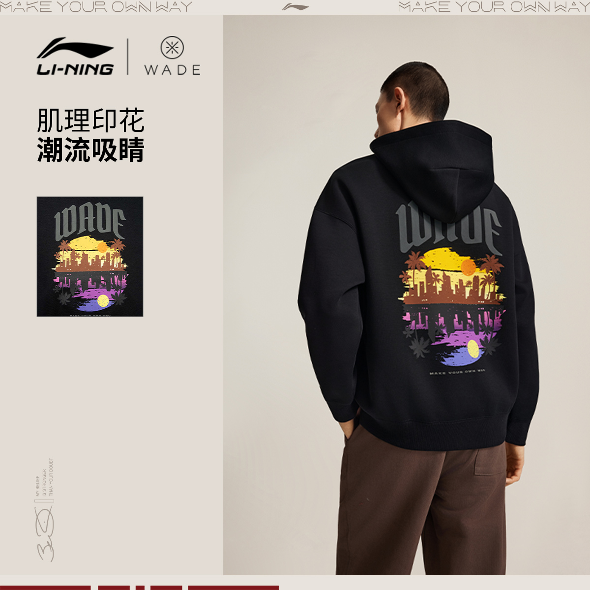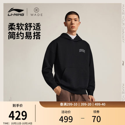 李宁宽松连帽男套头连帽卫衣