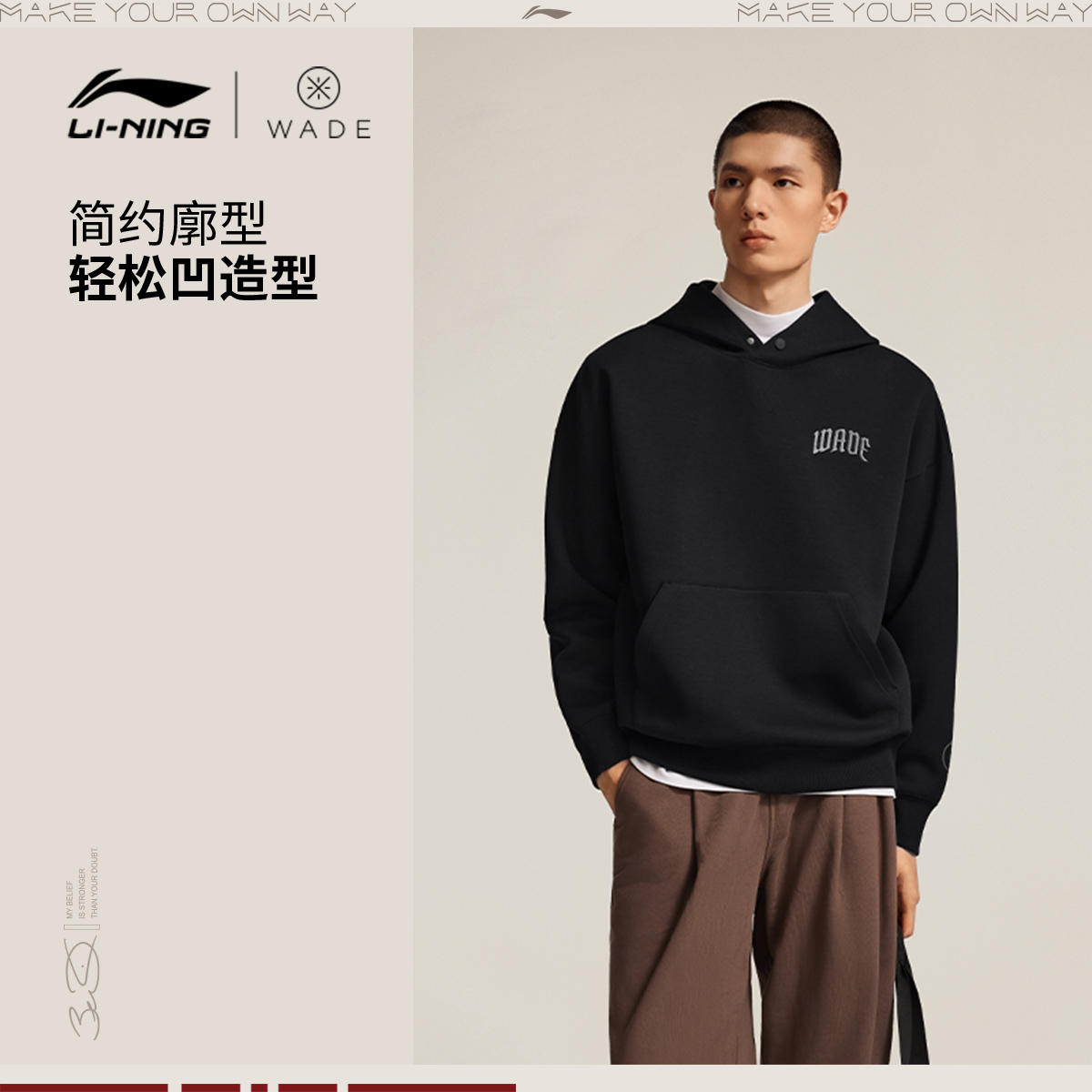 李宁卫衣男士2025新款韦德系列套头衫长袖连帽宽松冬季针织运动服