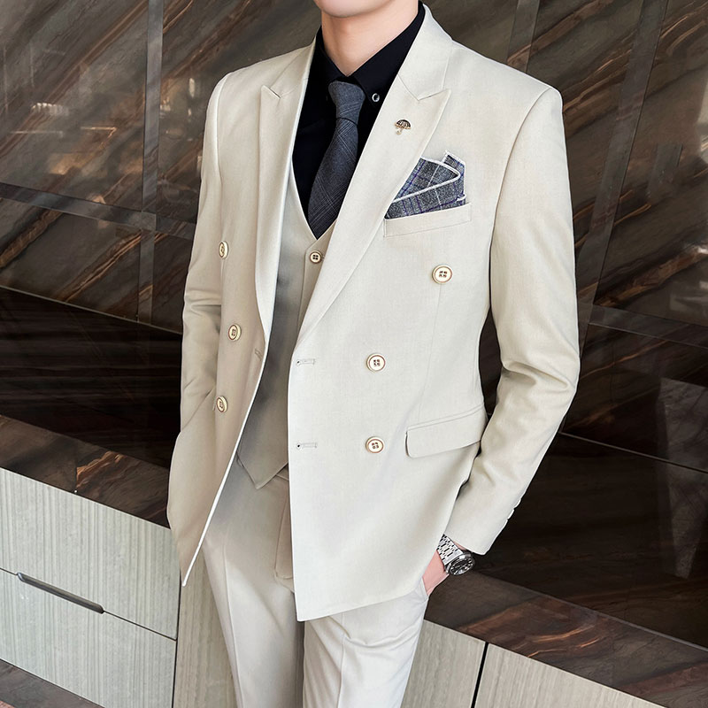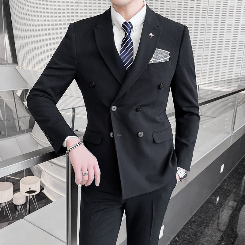 春装双排扣休闲西服套装男韩版商务纯色新郎结婚礼服修身痞帅西装