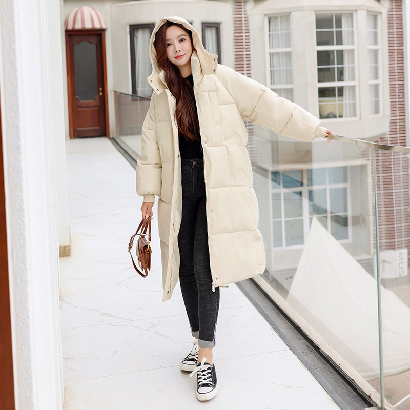外贸跨境2025长款过膝冬季新款棉衣女韩版宽松羽绒棉服女加厚