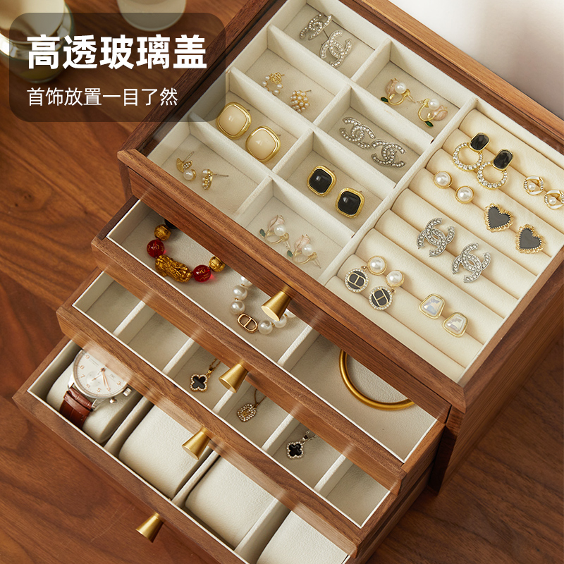 实木多层首饰收纳盒木制抽屉式防尘多功能网红高级轻奢高档饰品盒