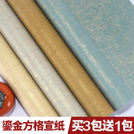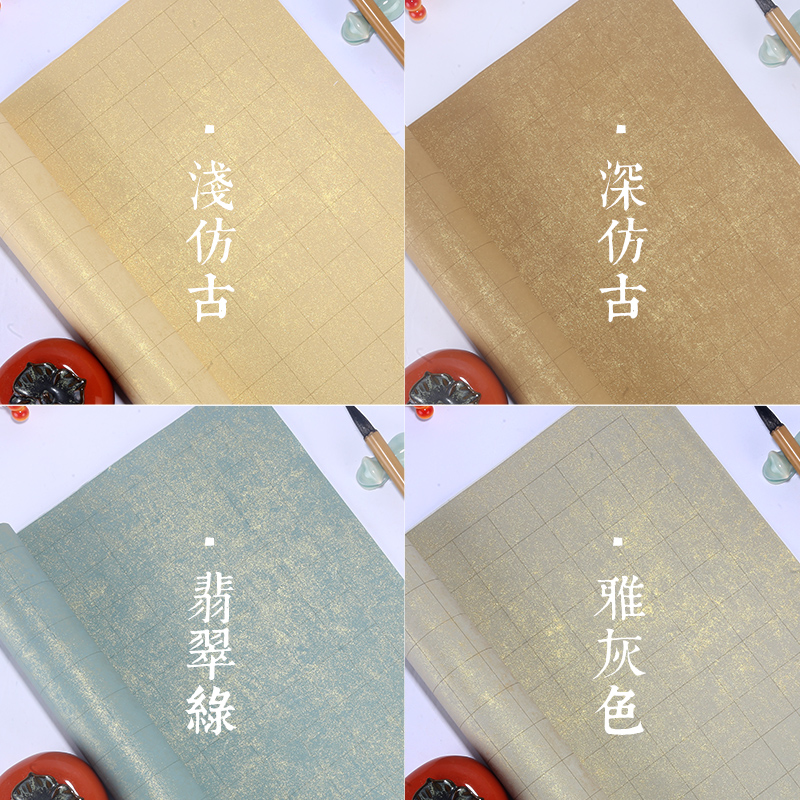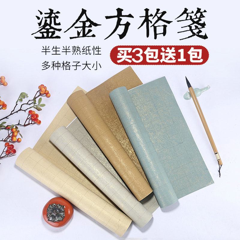 宣艺斋粉彩蜡染鎏金方格纸书法专用创作作品宣纸四尺对开六尺对开仿古半生半熟带格子毛笔书法国展小楷作品纸