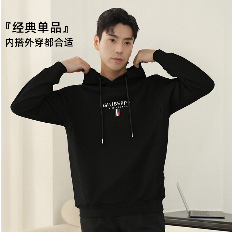 乔治白秋冬男连帽卫衣纯棉防风微弹休闲百搭纯色亲肤柔软舒适上衣