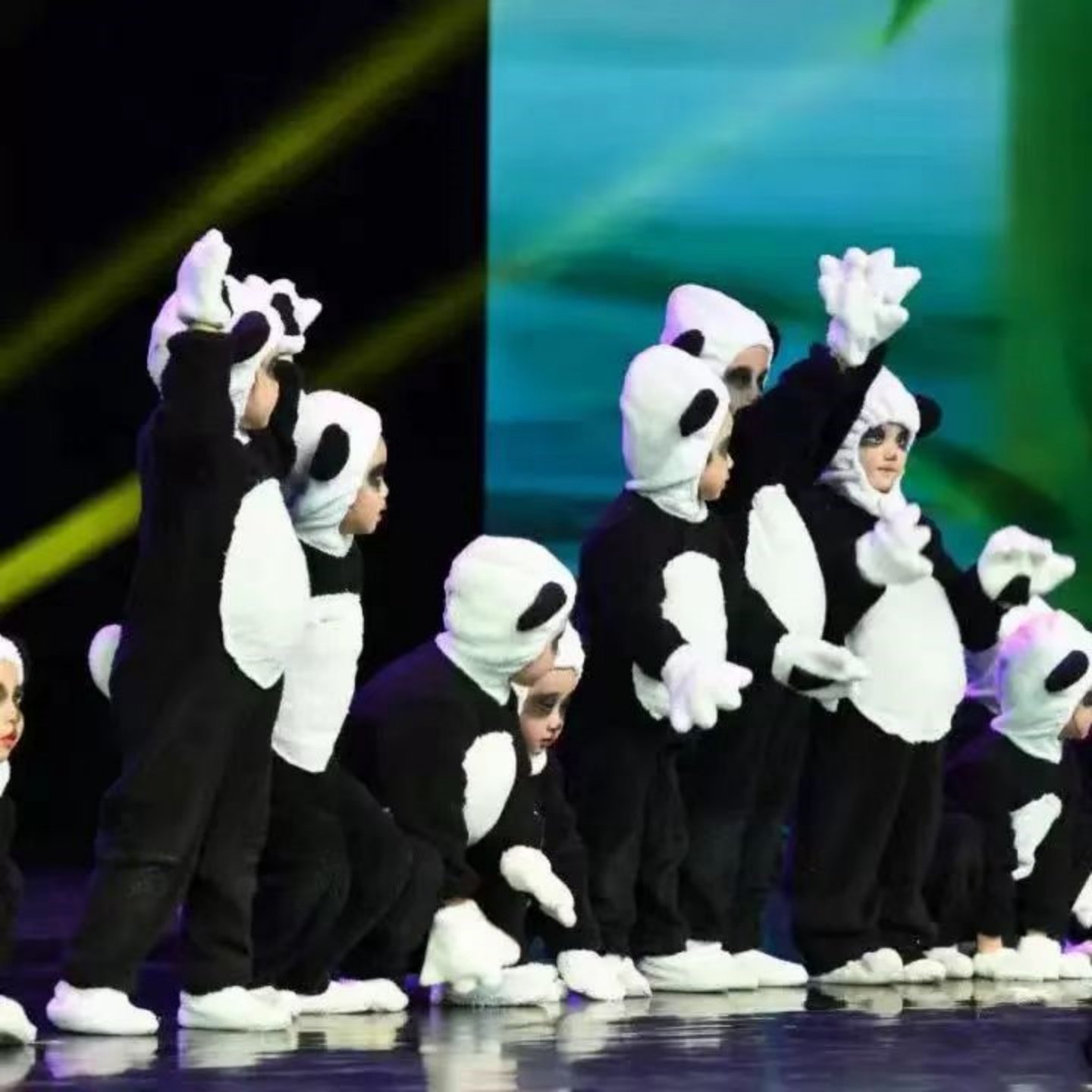 元旦大熊猫儿童演出服男女童功夫熊猫套装宝宝卡通动物造型表演服