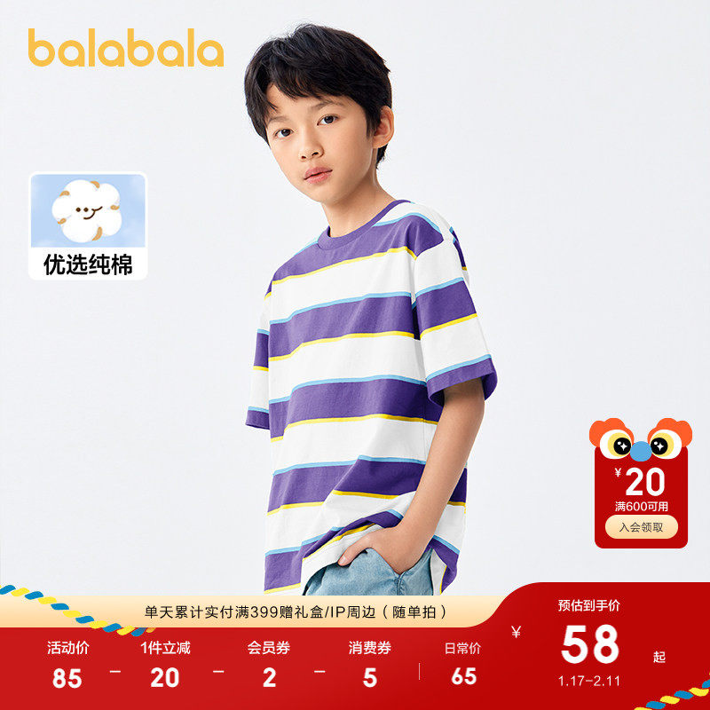 巴拉巴拉男童t恤童装春夏装儿童短袖纯棉中大童时尚条纹t打底衫潮