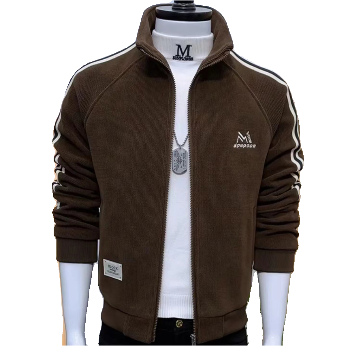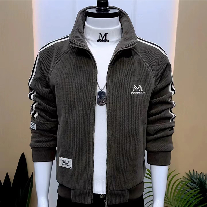 秋冬季男士夹克外套加厚休闲韩版修身立领时尚条纹百搭短款上衣男