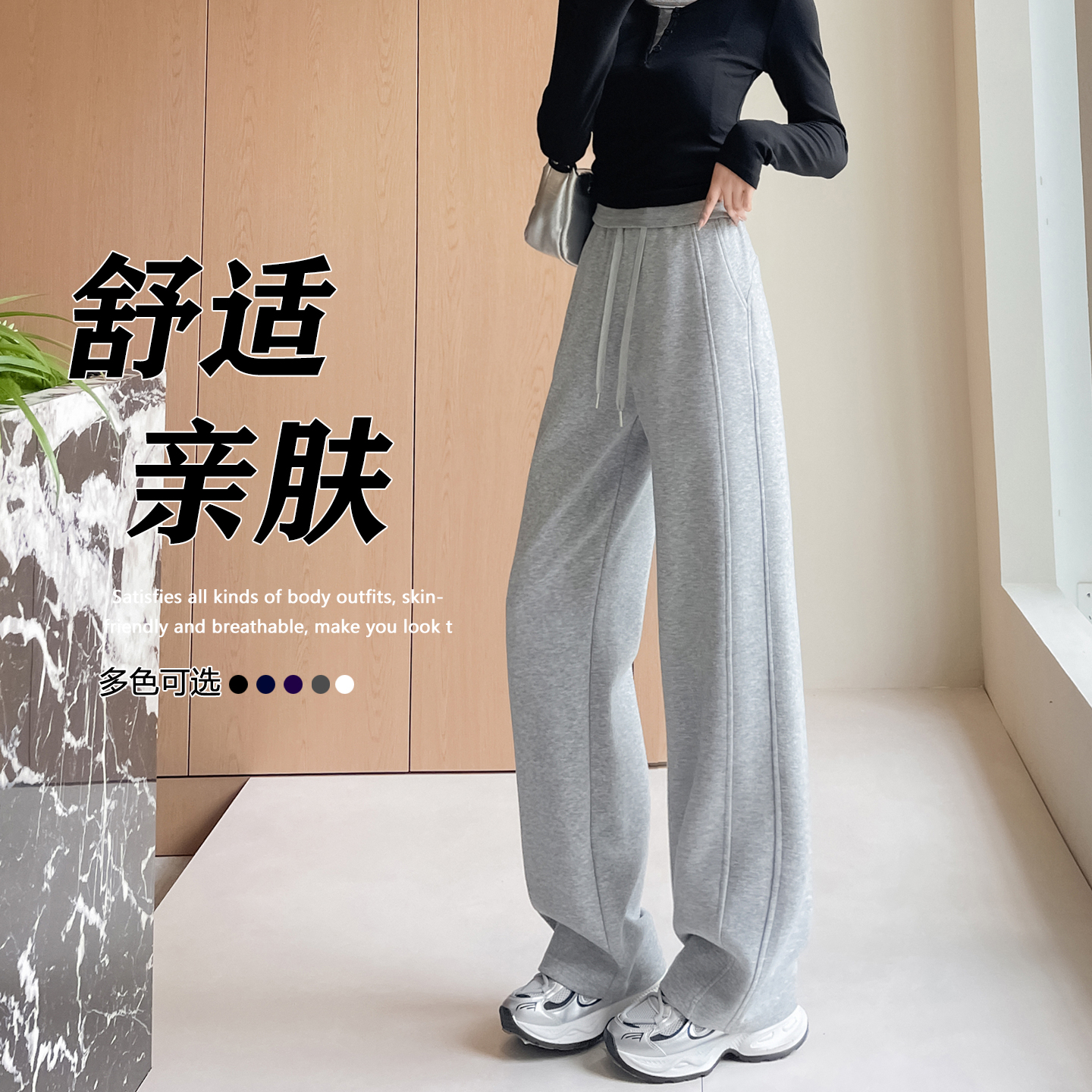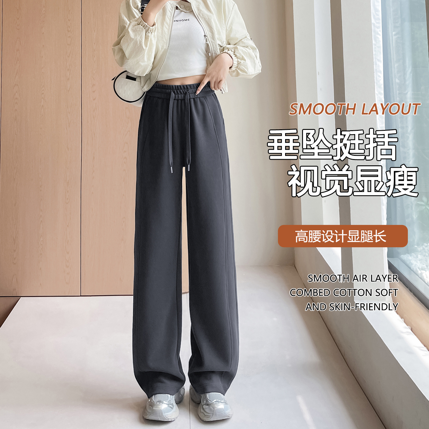 香蕉阔腿裤女春秋季高腰垂感休闲裤小个子松弛感窄版直筒运动卫裤