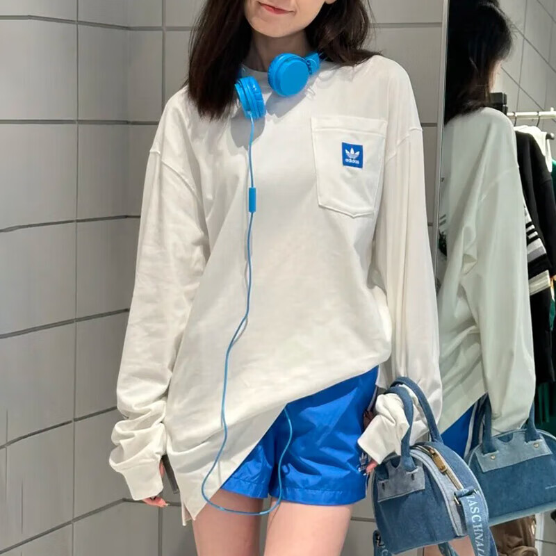 阿迪达斯三叶草男装秋季新款舒适纯棉印花运动长袖圆领T恤JC6833