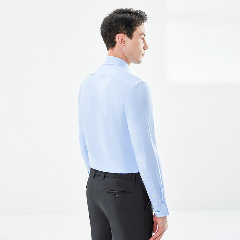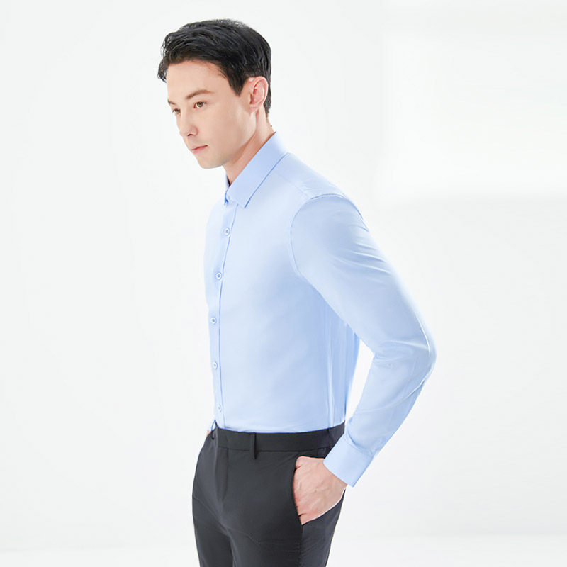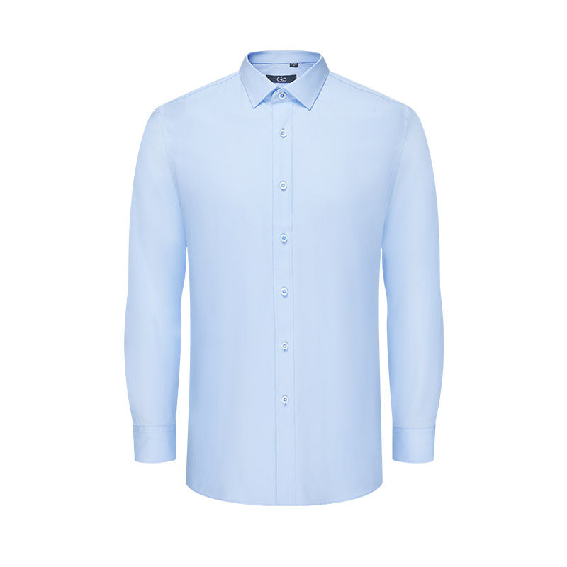 乔治白春季男士长袖衬衫方领商务休闲衬衣薄款修身顺滑上衣