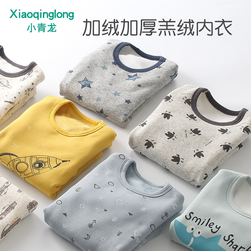 小青龙儿童内衣套装宝宝纯棉秋冬女童加绒加厚秋衣秋裤男童套装