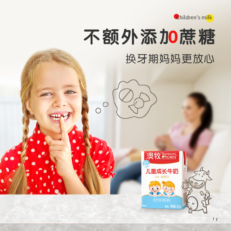 【进口】澳牧A2儿童牛奶200ml*6盒早餐牛奶零蔗糖整箱学生成长奶