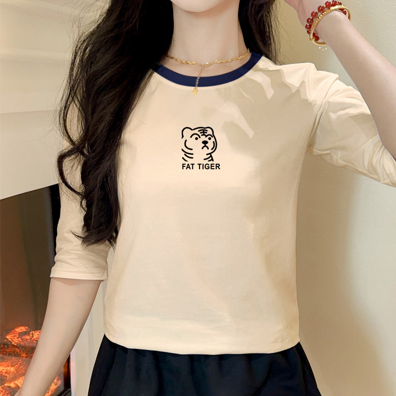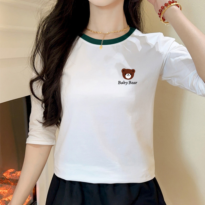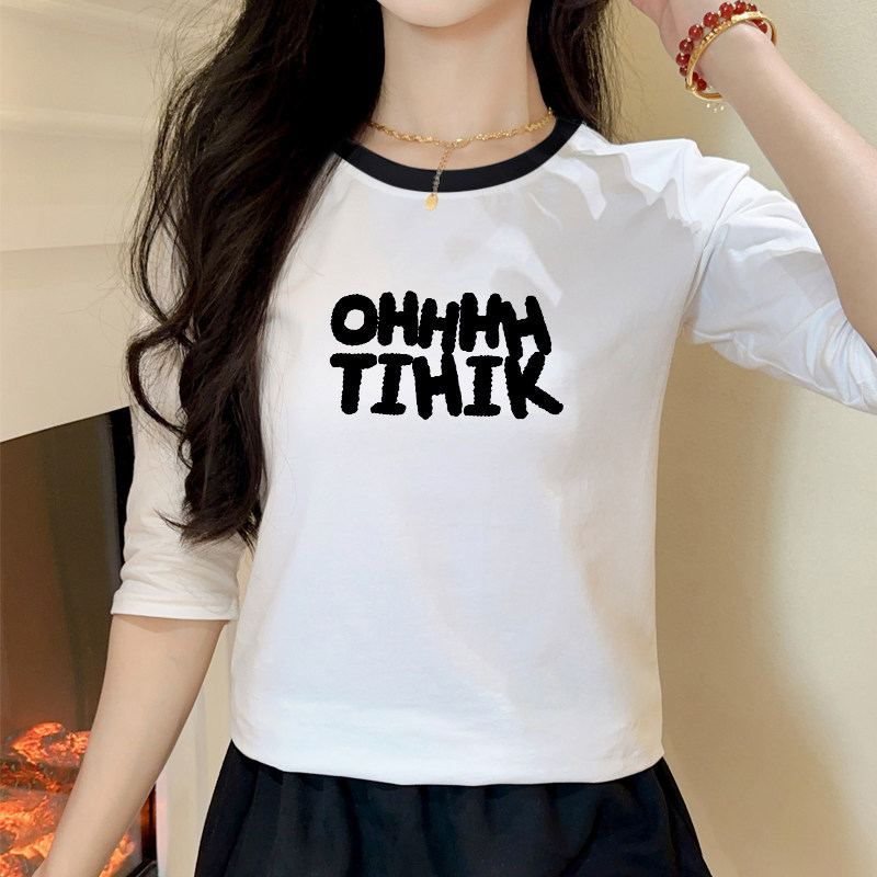 2025早春新款女装欧洲站欧货中袖上衣女七分袖t恤纯棉宽松小衫