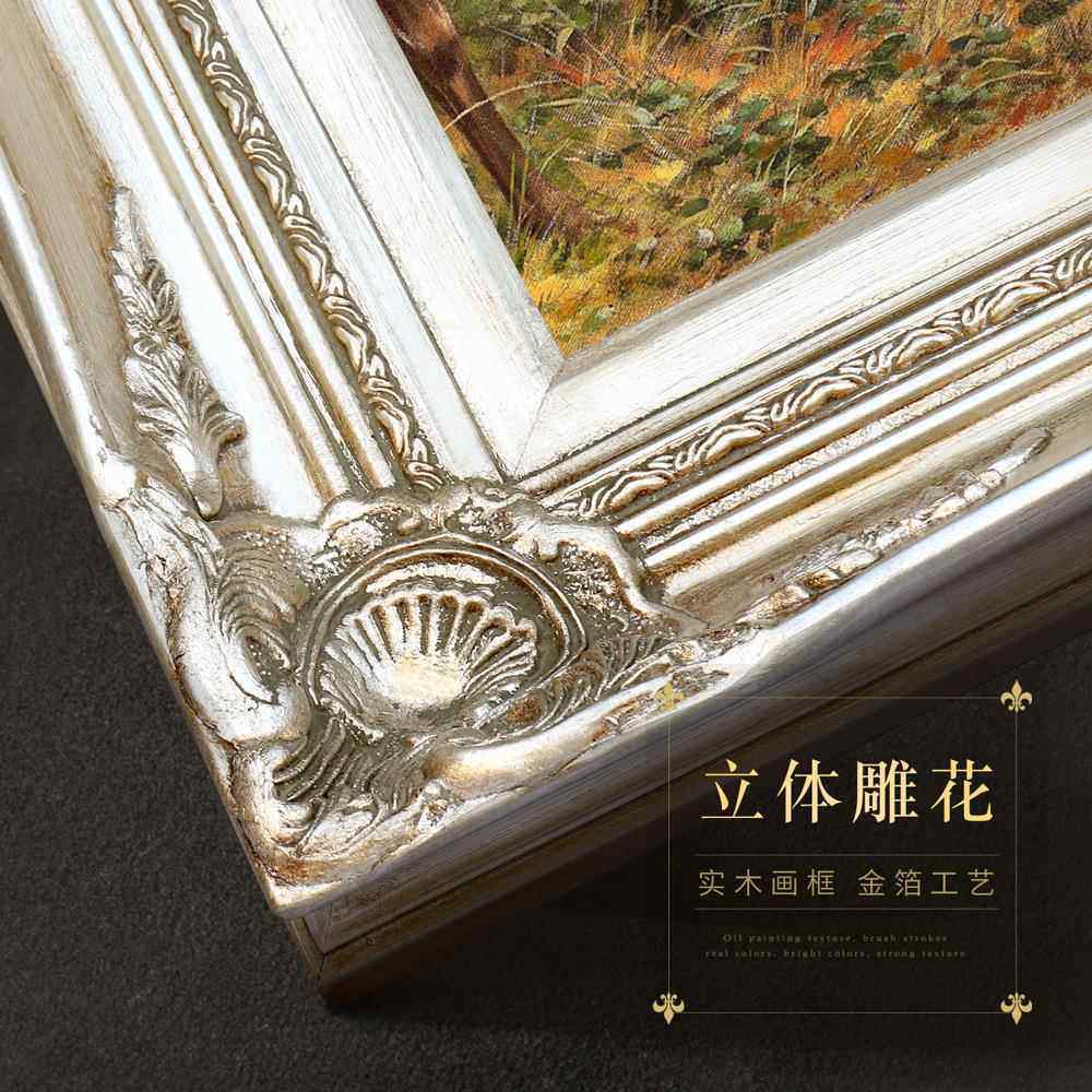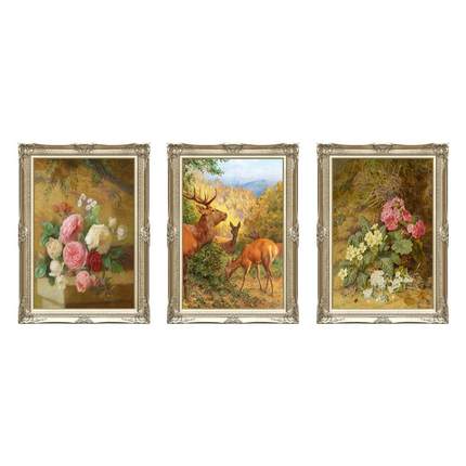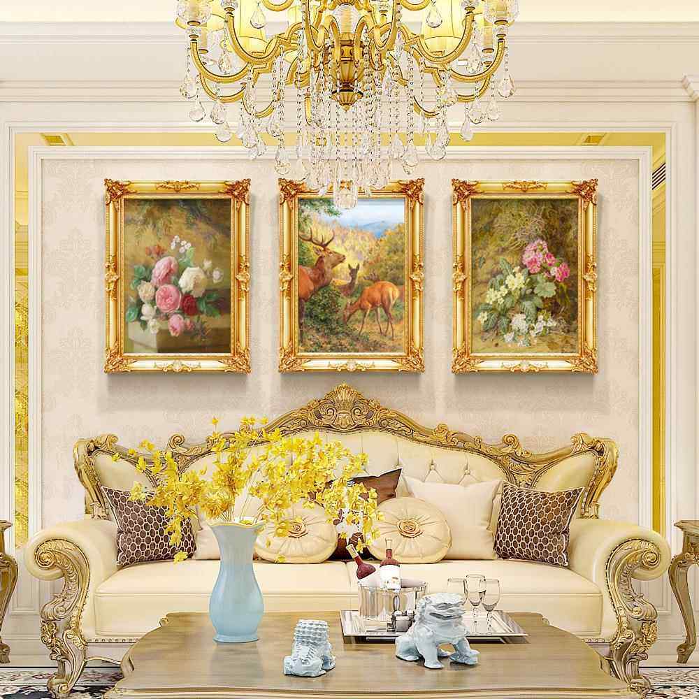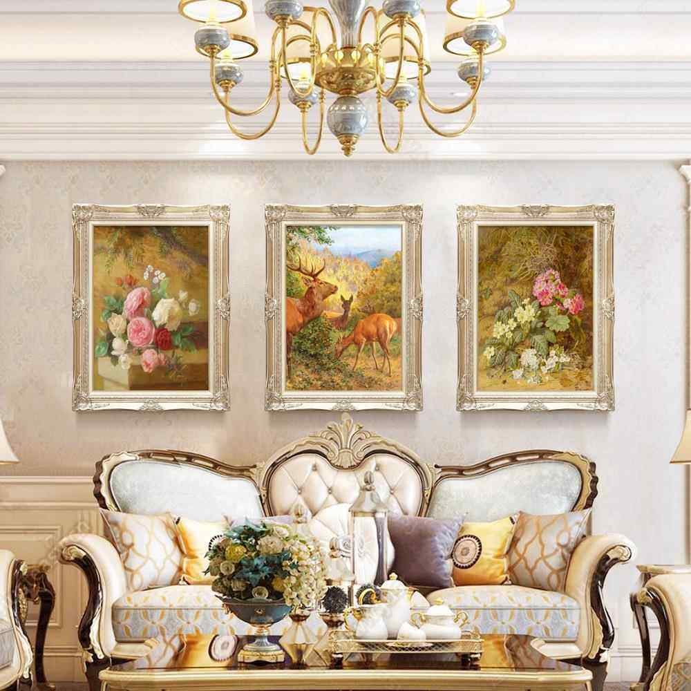 ss55式客厅油沙发背景装饰三联花画卉小鹿风景画简欧画壁画欧挂画