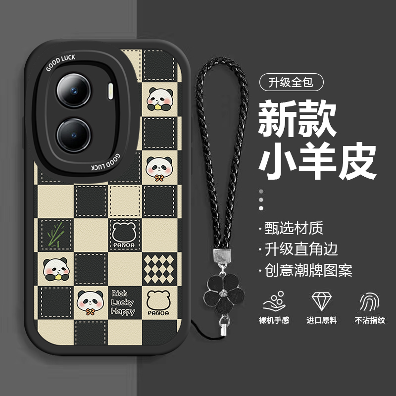 适用vivoy35m+手机壳新款Y100格子熊猫y53s硅胶y31s标准版防摔y33s可爱女y32带挂绳y30高级感y11全包保护套